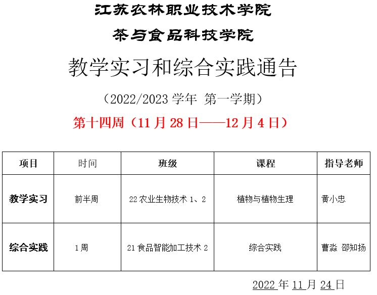 2022-2023-1学期第十四周教学实习与综合实践通告