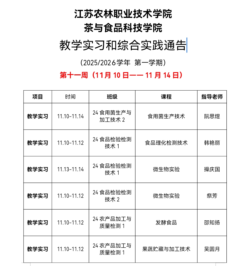 2025/2026学年第一学期第十一周教学实习和综合实践通告