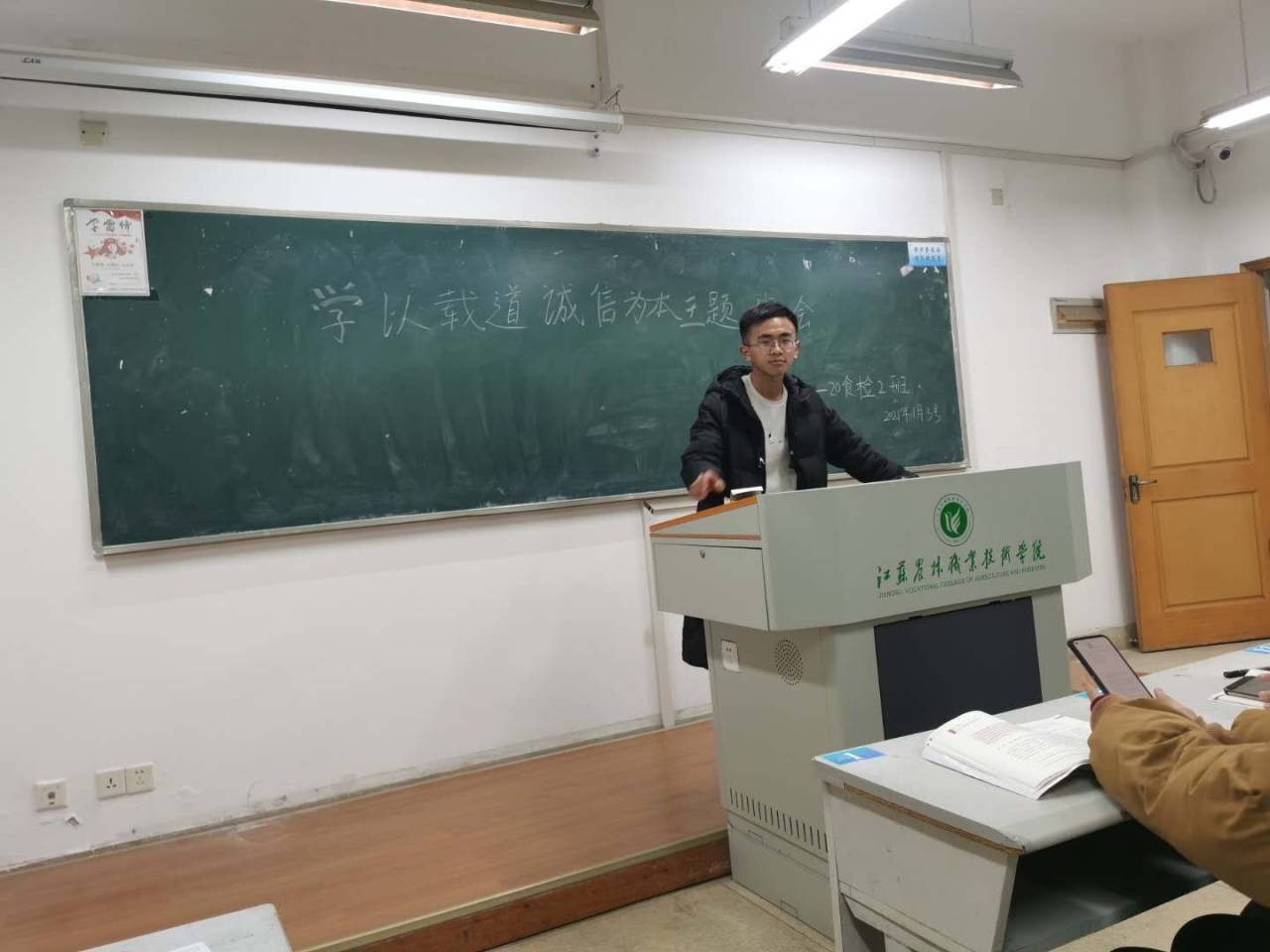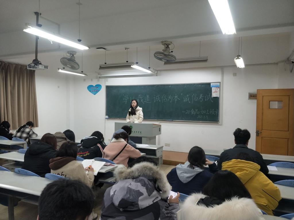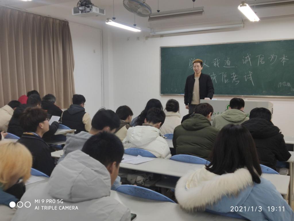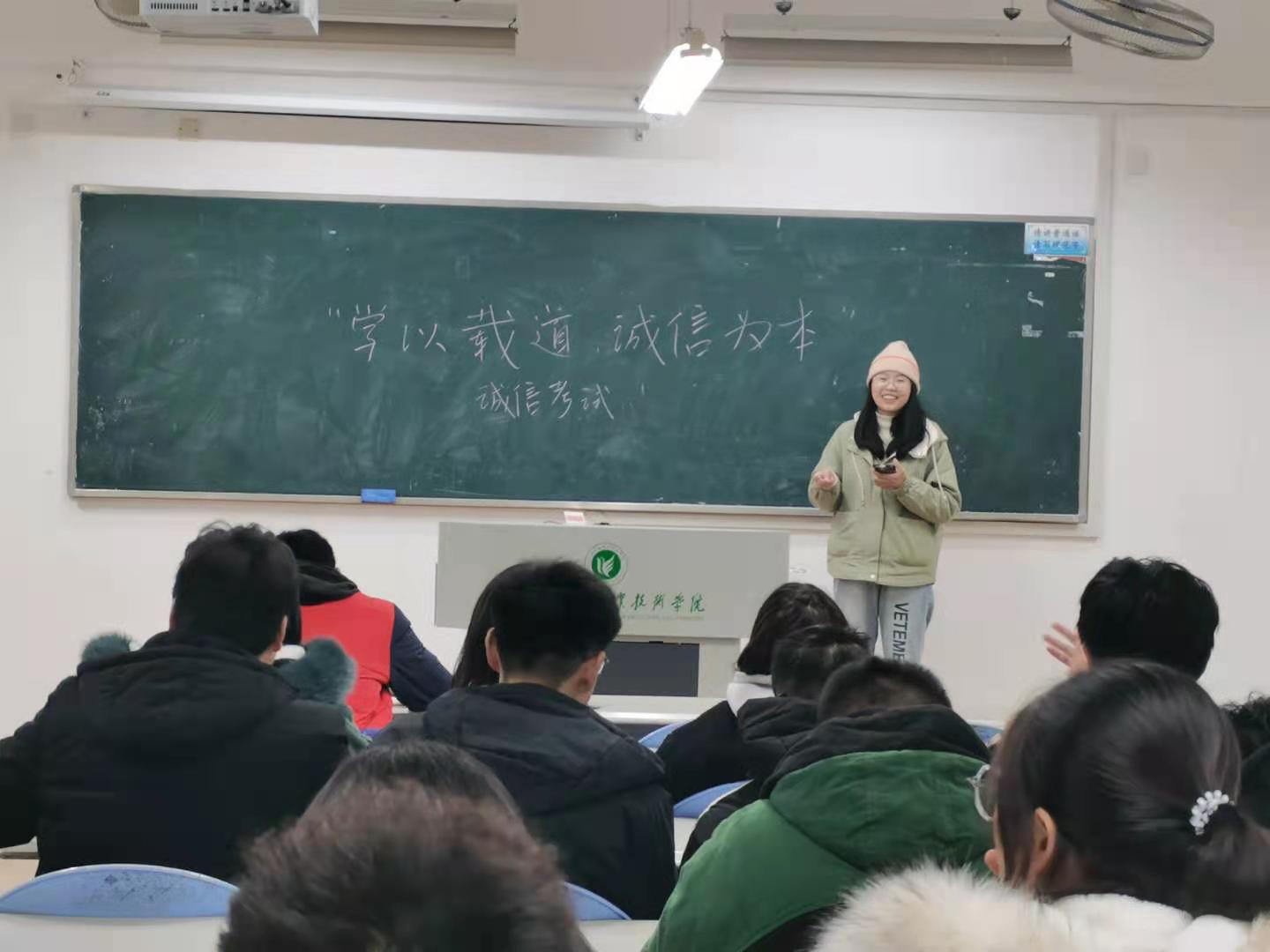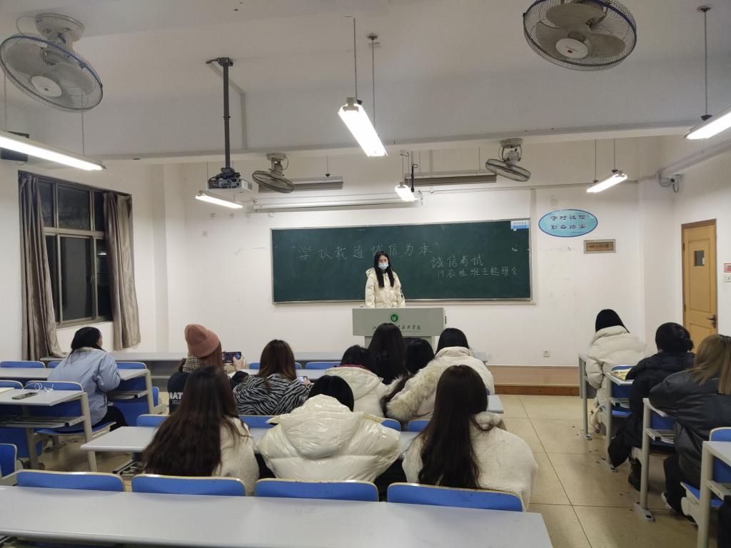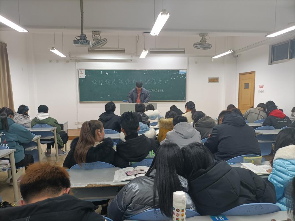为了进一步加强考风考纪教育,让学生牢固树立诚信意识,1月3日,我院各班级在J1教学楼自习教室开展了“学以载道 诚信为本”的诚信考试主题班会。