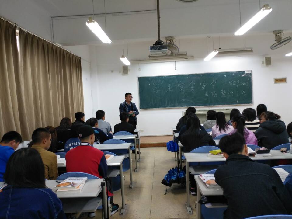 学生宿舍是学生在校期间生活、学习的重要场所,为创建一个文明、和谐的宿舍环境,营造有助于学生的成长、成才的宿舍氛围。加强对学生宿舍的管理,确保学院的安全与稳定。我系各班级在4月5日-6日在J1教学楼相继召开学生宿舍安全专项整治工作主题班会,组织学习《学生手册》中相关条例。