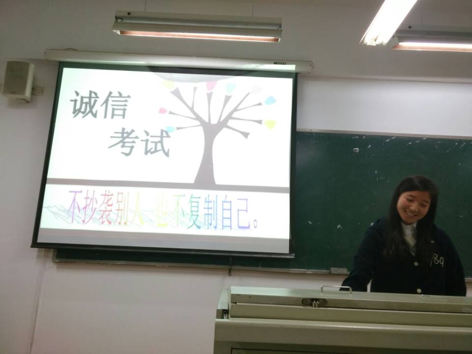 为了进一步加强考风考纪教育,让学生牢固树立诚信意识。1月18日下午,我系各班在J1教学楼各班自习教室举行了“诚信考试 诚信做人”的诚信教育主题班会。