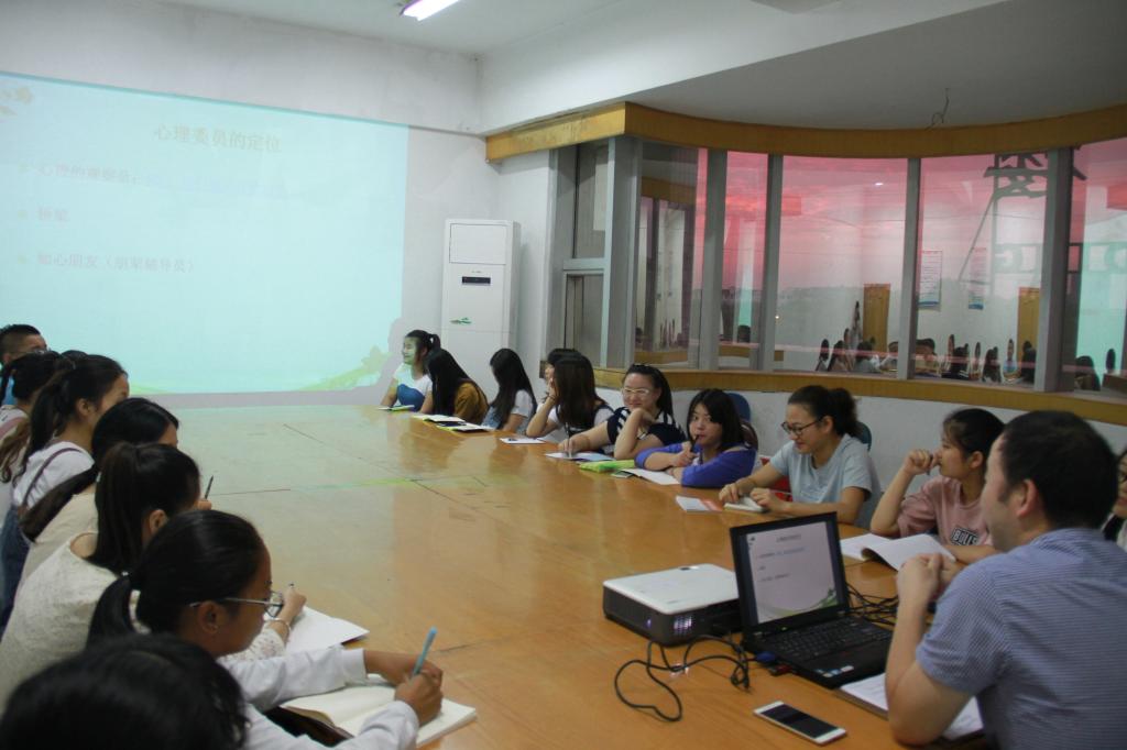 首先,心育委员间做了自我介绍,对返回本部的心育委员表示欢迎;其次,各班级心育委员介绍了一年来在心育工作上的收获与想法;最后,系部心理老师从维护自身的心理健康、加强班级心理健康知识的宣传与普及、心育委员的定位、心育委员关心的对象、善用资源借力打力、心育委员工作职责等几个方面进行了业务能力培训。