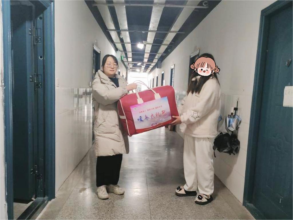 在本次冬日送温暖活动中,茶与食品科技学院资助辅导员杨帆前往学生宿舍为受助同学送上暖冬棉被,并与同学亲切交流,关心日常生活中是否遇到困难,在校学习等情况。