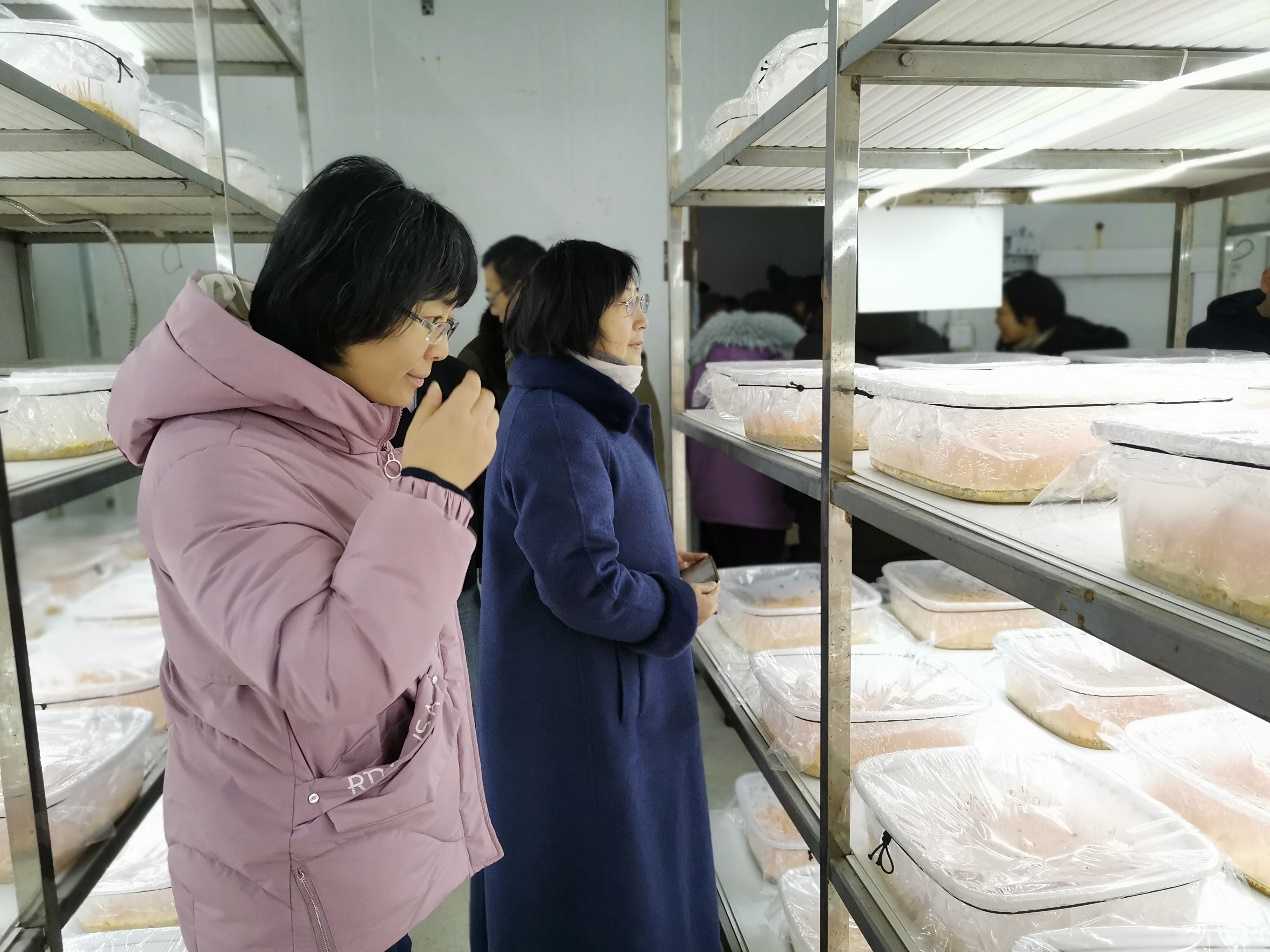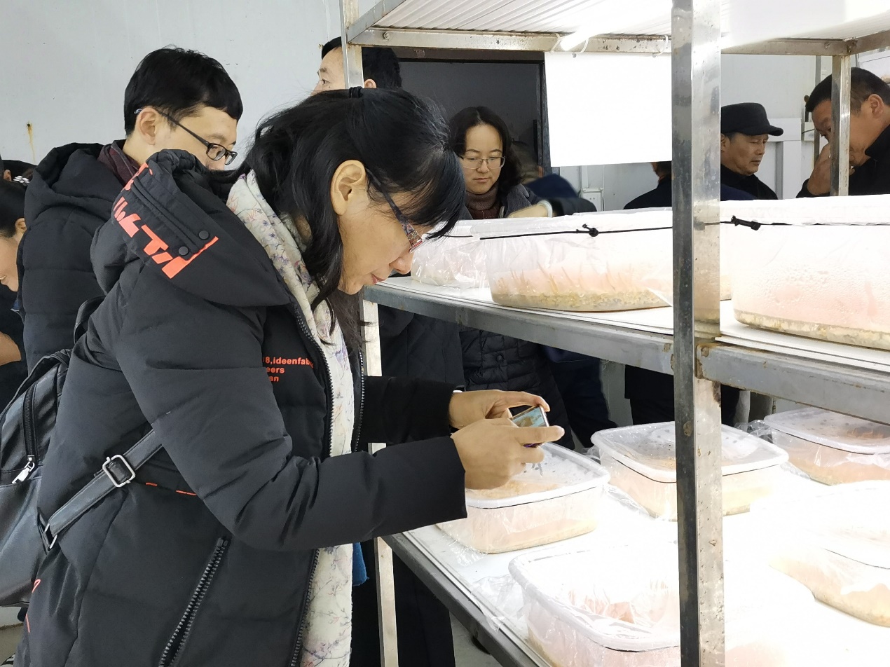 12月27日,为推动2019年江苏现代农业产业技术体系项目顺利进行,促进江苏地区食用菌产业发展,加强示范基地与科研院所、企业间的交流合作,在江苏食用菌研究所句容特色蔬菜(食用菌)推广示范基地举办项目交流与技术观摩活动,江苏省食用菌协会会员代表约有100多人观摩。基地主任谢春芹副教授向代表们介绍了示范基地的基本情况、近年来的研究成果、主栽食用菌品种及食用菌加工产品等,并陪同代表们参观了菇菌文化展示馆,(秀珍菇、猴头菇、蝉花等)出菇房以及羊肚菌栽培大棚。