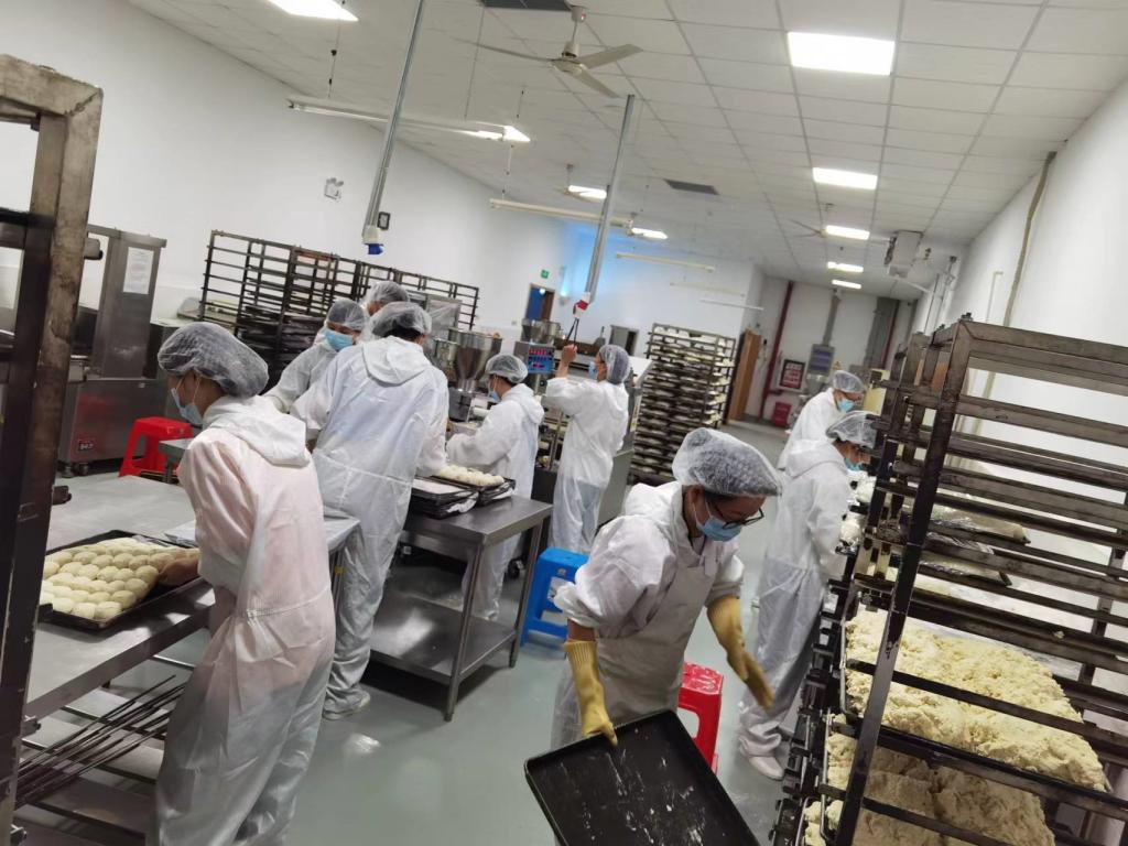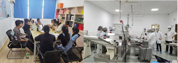 此次活动,我院有30名学生在苏州胥城食品有限公司开展岗位实习,主要学习不同风味“苏式”、“广式”月饼等糕点的生产流程,掌握生产工艺,了解生产环节关键控制点。岗位实习包含专业技能培训学习和不同环节生产实践;同学在经过专业技能培训后,能够独立完成包括原料验收、机械操作、品控质检、包装验收等不同生产环节的操作,将专业知识与岗位技能充分融合。