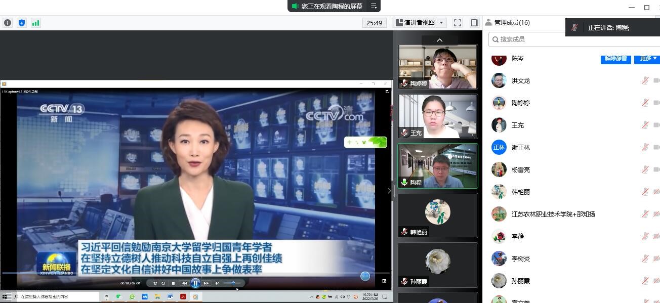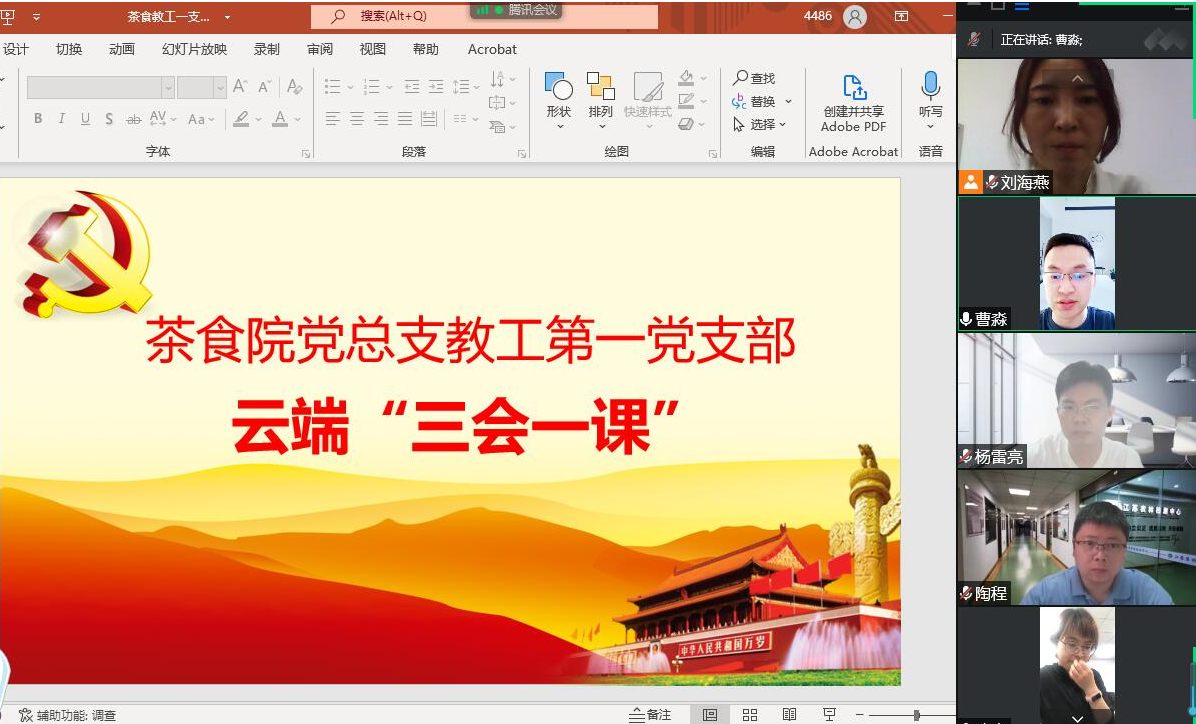 5月26日上午,茶与食品科技学院教工第一党支部全体党员齐聚线上,开展“云学习”活动,会议由支部书记曹淼主持。