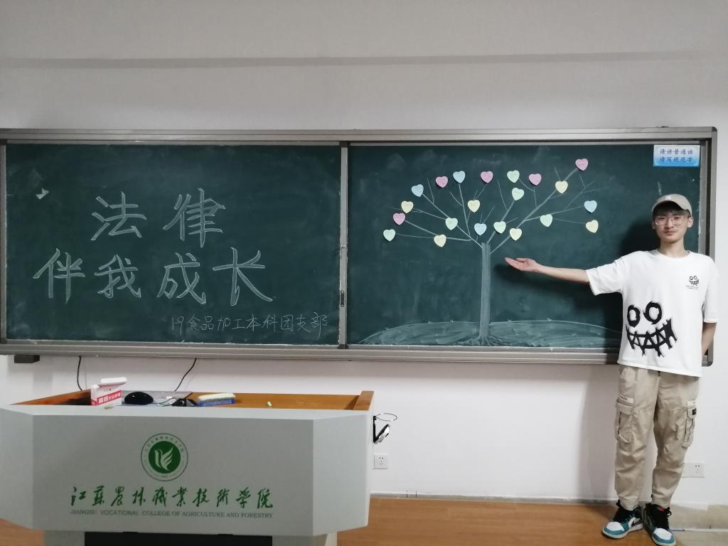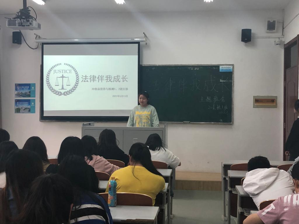 其中20食品加工技术(本科)1、2团支部进行了“模拟法庭”审判,将庭审程序展现于同学们的面前,使法律条文不再死板,生动形象的使同学们理解法治社会的重要意义,随后还进行了法律知识普及和签字仪式;而20食品营养与检测1、2团支部则进行了法制小知识问答,在问答中增长法律知识;其它团支部均开展了形式各异的团日活动。