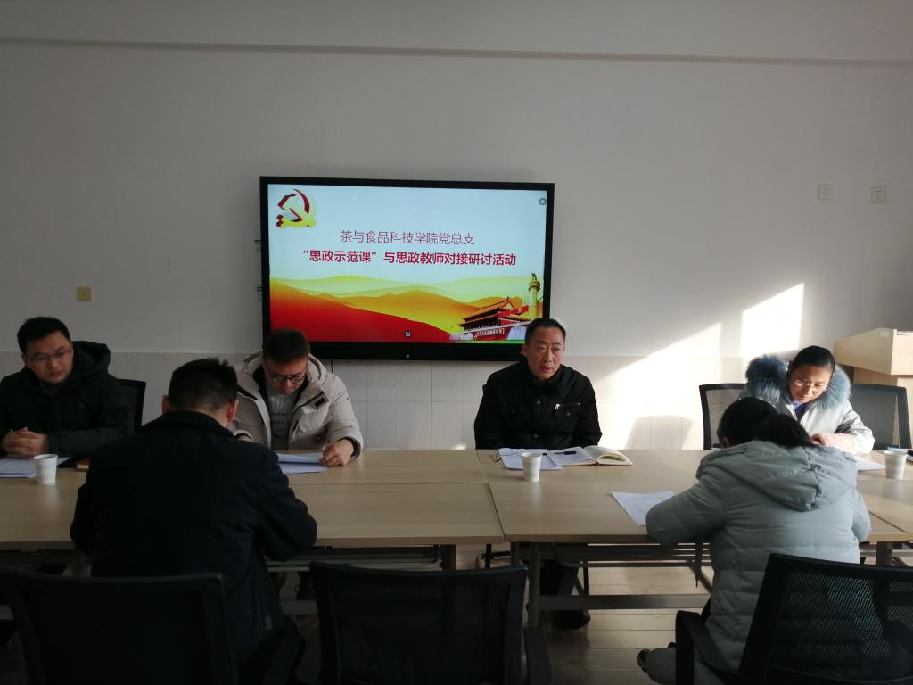 12月17日下午,为进一步推进茶食院双高建设课程思政工作,切实提高人才培养质量。我院党总支组织开展“思政示范课”与思政教师对接研讨活动,李静书记出席本次会议。会议由张小华副院长主持。