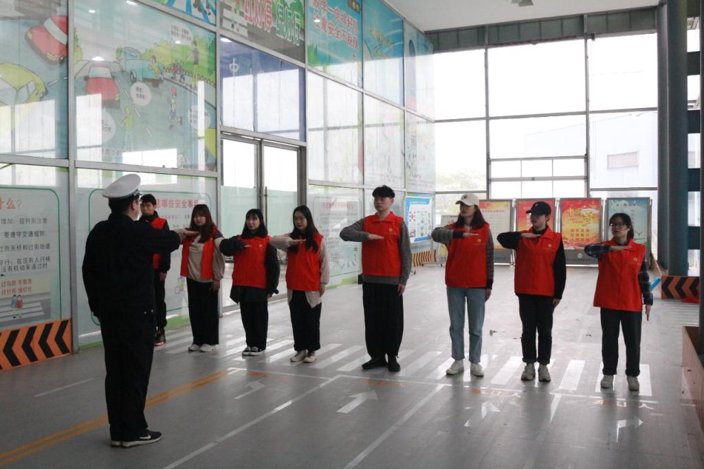 12月1日下午,9名团员青年与我院学工办的戴雨晴老师一同前往句容市交警大队接受专业交警的交通安全知识培训,通过专业交警在模拟道路上演练,志愿学生们了解了专业知识,熟悉了交通文明劝导的具体内容。