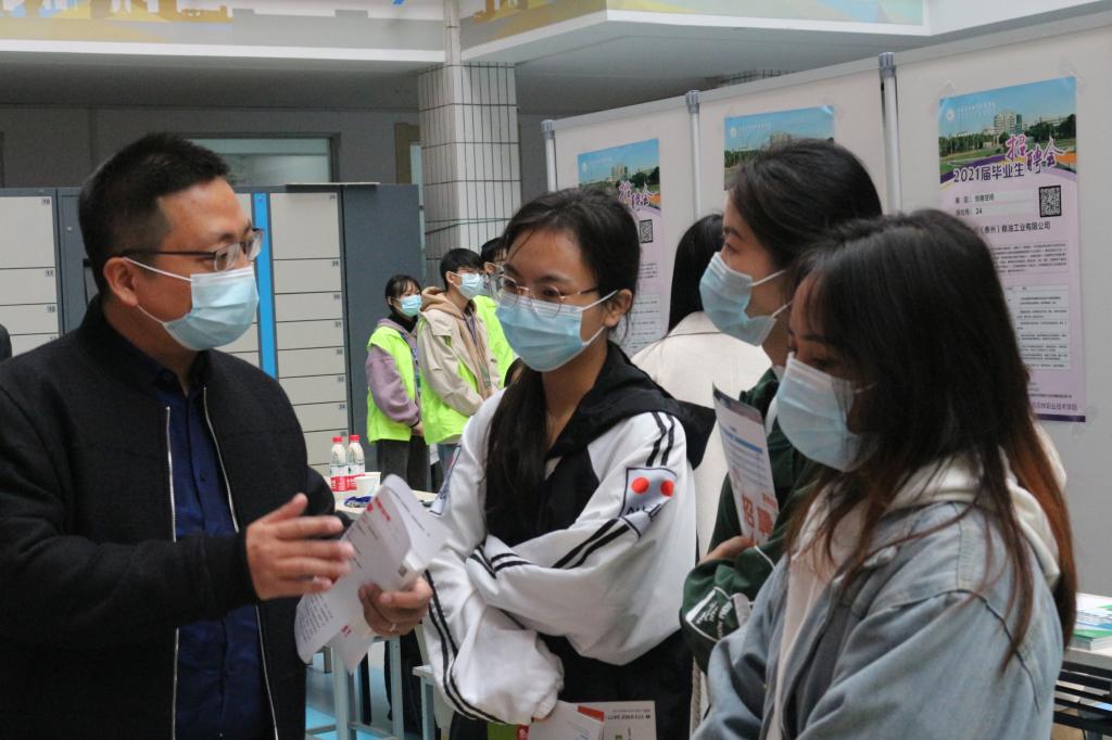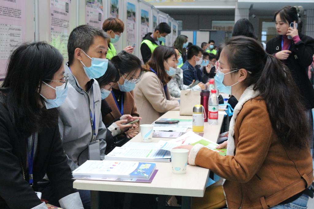 招聘会上,学生都手持自己精心准备好的自荐书和简历,积极与招聘人员交流,主动了解用人单位的情况。单位则通过海报、面对面交流等方式向学生介绍公司概况、招聘岗位和职业发展。招聘会后,部分企业还进行了现场宣讲与专场面试。