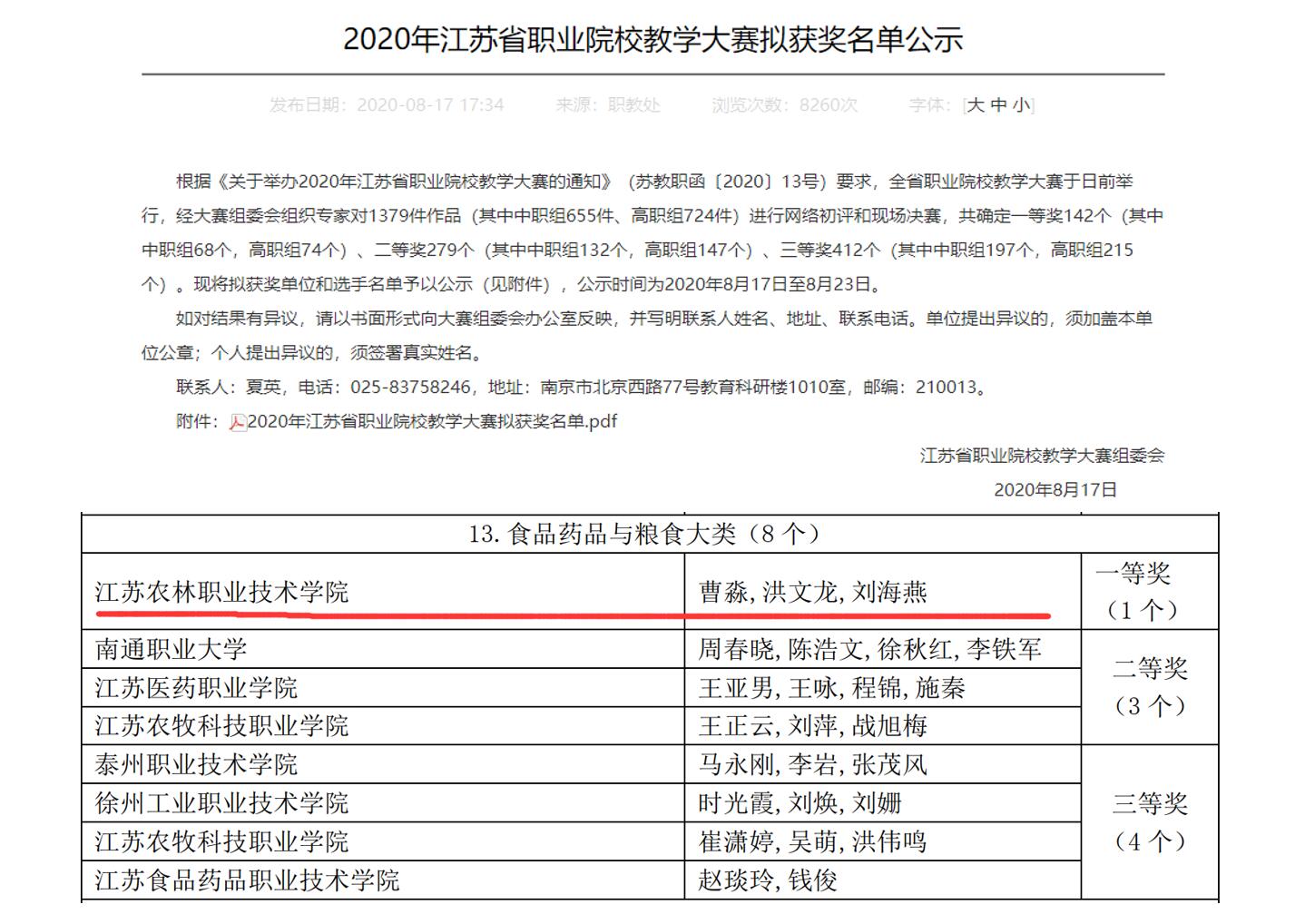 8月14至15日,江苏省职业院校教学大赛决赛在南京高等职业技术学校举行,我院曹淼、洪文龙、刘海燕三位教师组成的团队参赛并荣获一等奖。