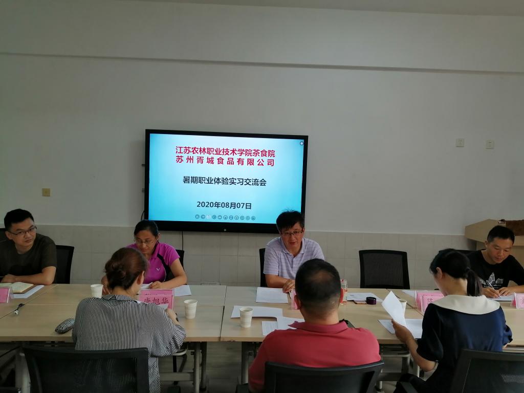 8月7日下午,茶与食品科技学院在学院会议室召开了暑期学生职业体验交流会。苏州胥城食品有限公司总经理洪延锋一行3人参加了此次交流会。