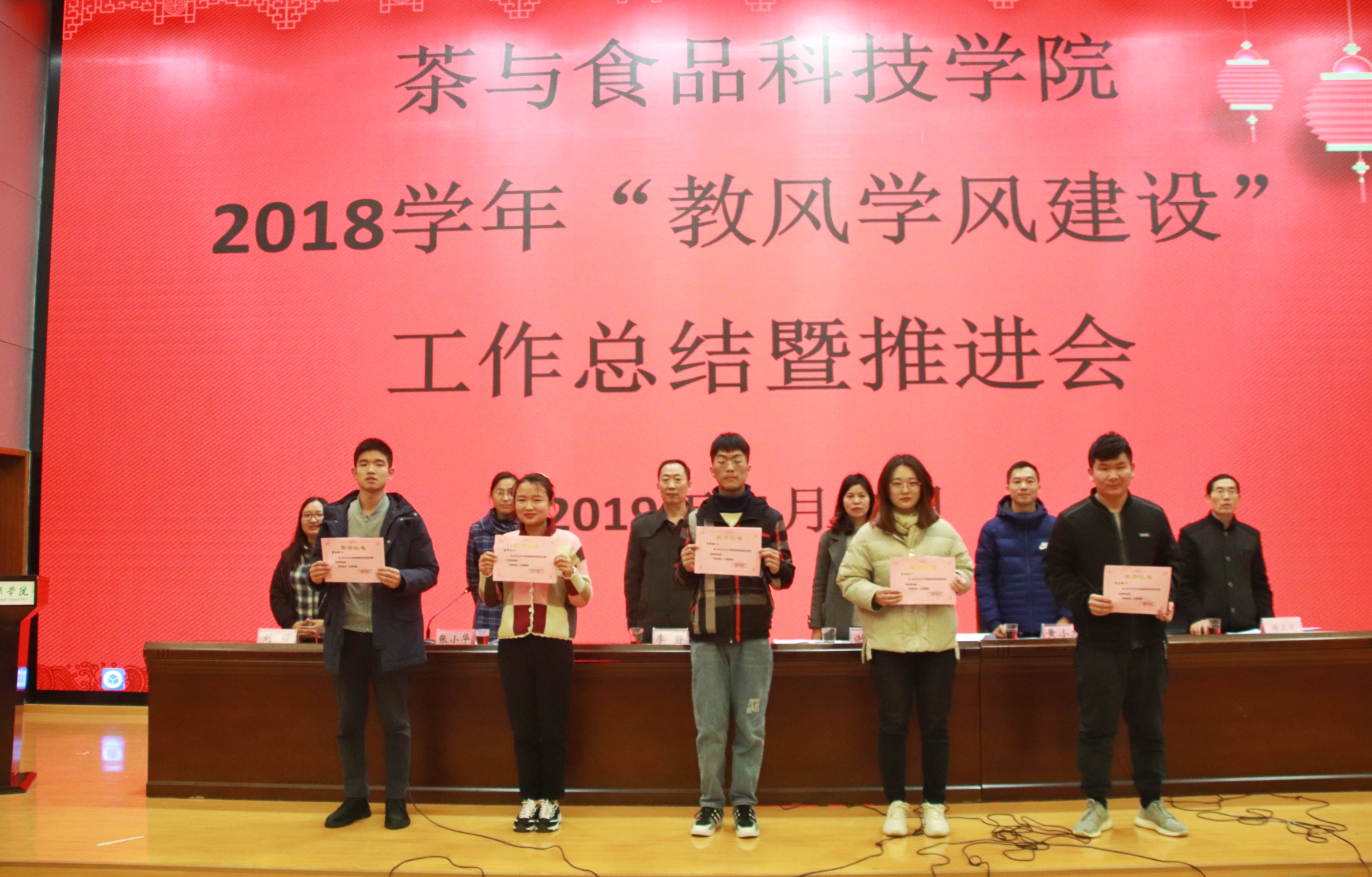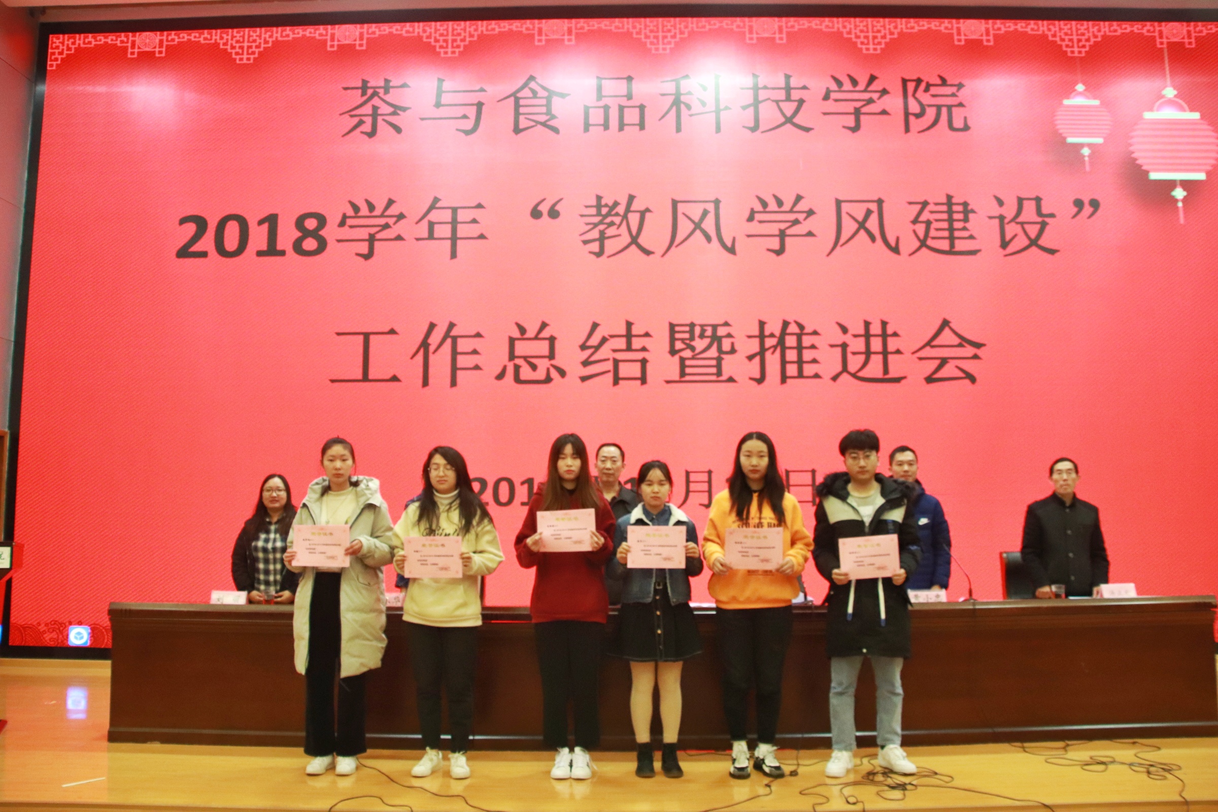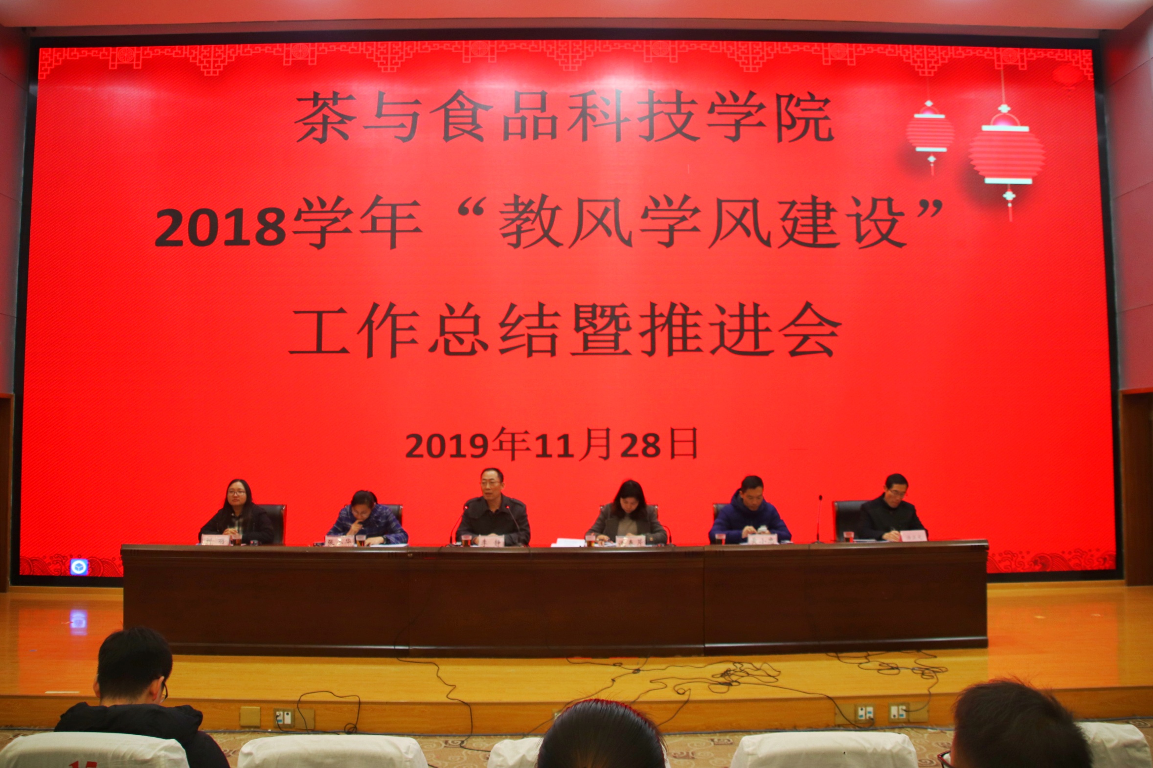 11月28日,我院在图书馆报告厅召开了18学年教风学风建设总结表彰暨推进会。参加会议的有茶食院领导、教师和学生。会议由张小华副院长主持,李静书记作了茶食院18学年教风学风建设工作总结报告,谢春芹副书记对19学年教风学风建设推进工作进行了宣传动员,黄小忠主任宣读表彰决定。表彰了谢春芹等6位教风优秀教师、17农产品加工与质量检测2班等4个学风优秀班集体、冯经等54位学风优秀学生、夏艳红等18位明显进步学生。同时,还表彰了19年暑期岗前实训的优秀指导教师和表现优秀的学生。会议收了很好的效果,为新的学年教风学风建设推进工作奠定了良好的基础。