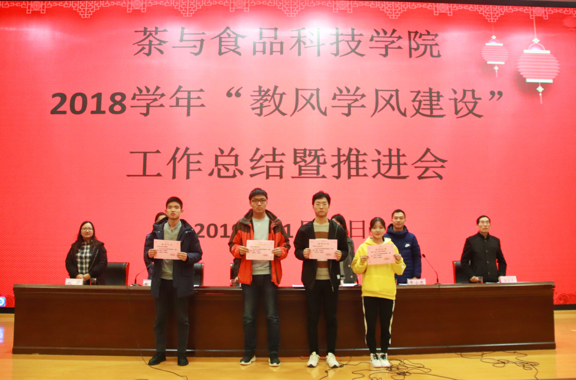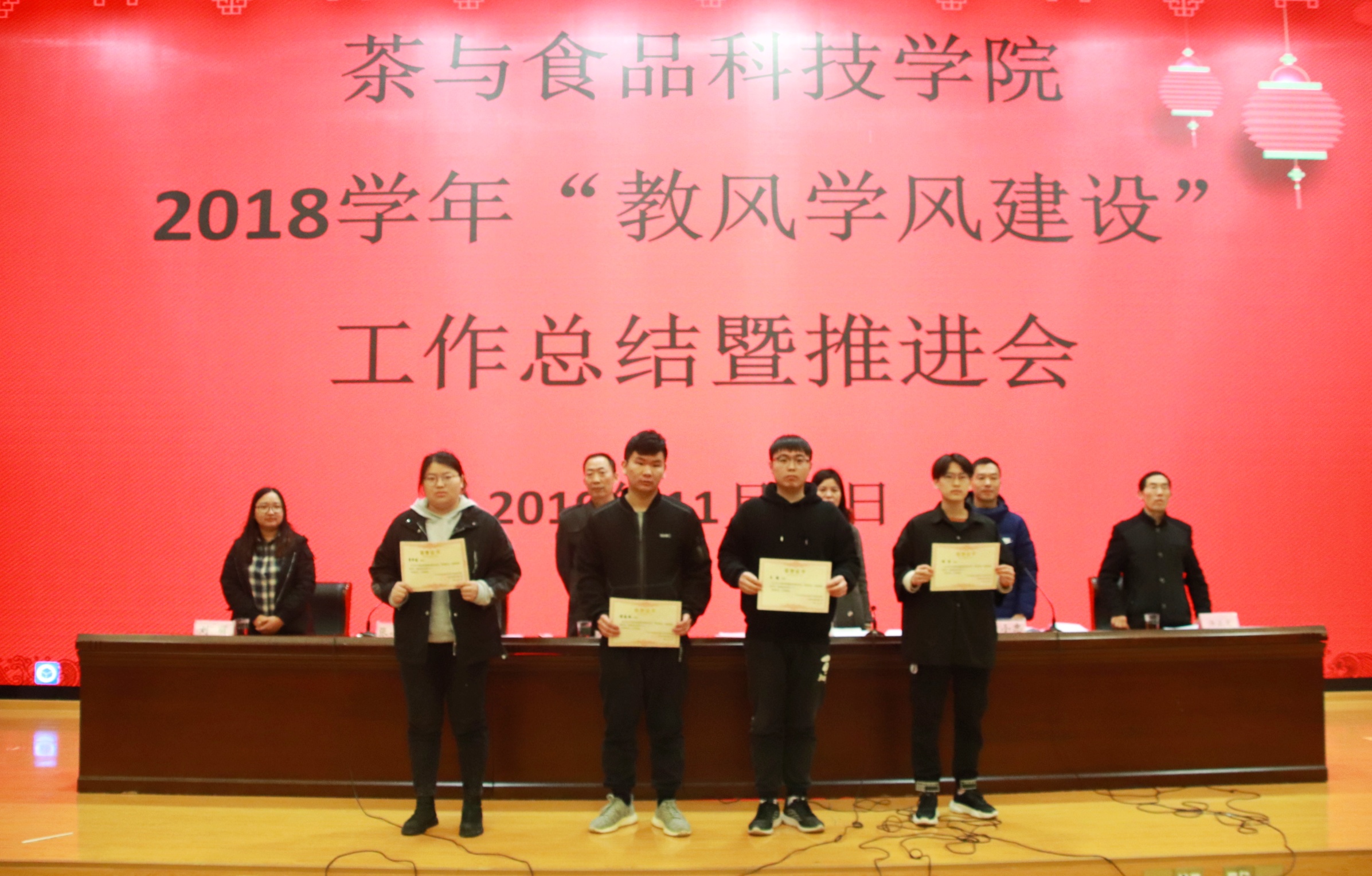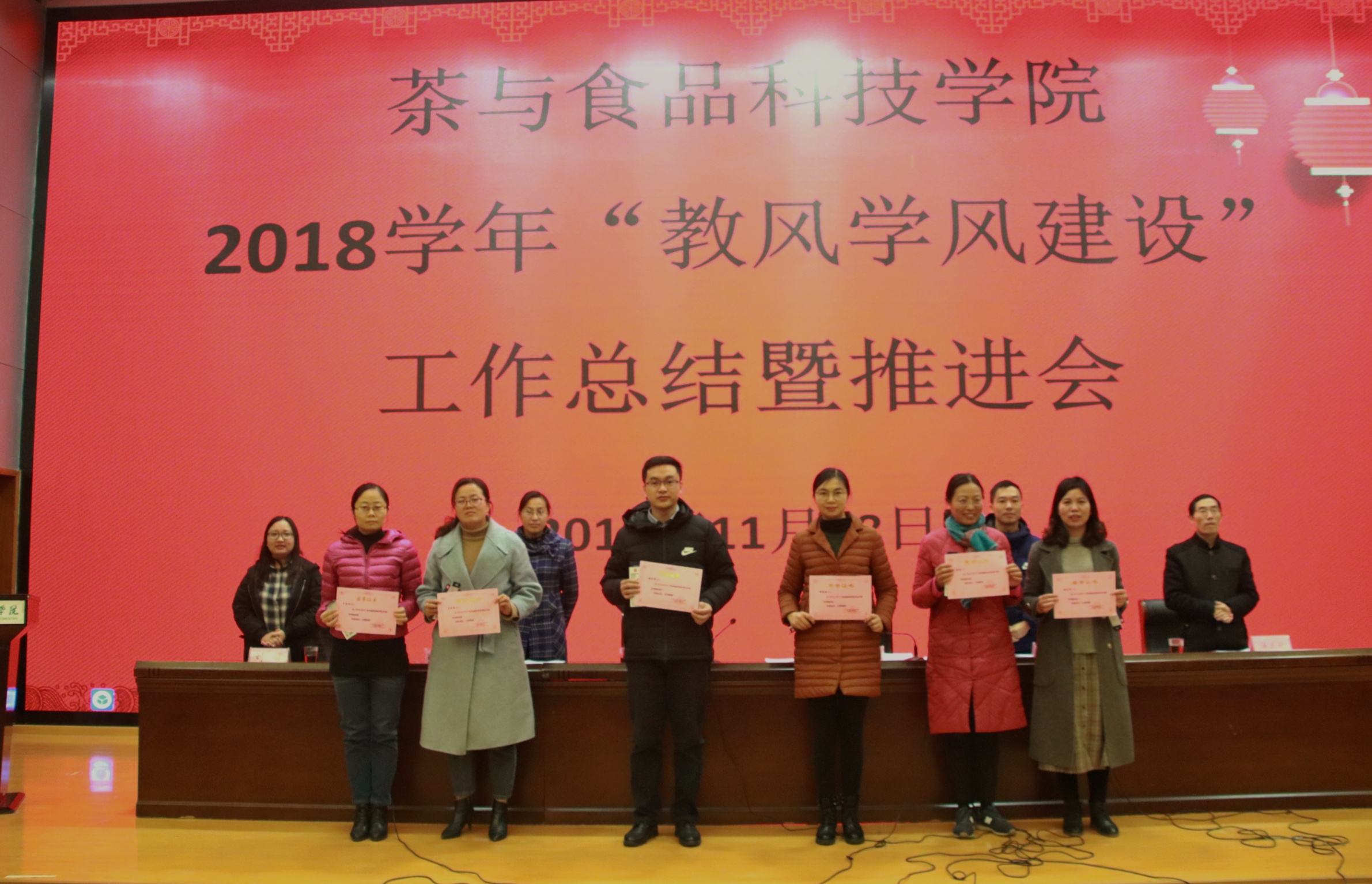 11月28日,我院在图书馆报告厅召开了18学年教风学风建设总结表彰暨推进会。参加会议的有茶食院领导、教师和学生。会议由张小华副院长主持,李静书记作了茶食院18学年教风学风建设工作总结报告,谢春芹副书记对19学年教风学风建设推进工作进行了宣传动员,黄小忠主任宣读表彰决定。表彰了谢春芹等6位教风优秀教师、17农产品加工与质量检测2班等4个学风优秀班集体、冯经等54位学风优秀学生、夏艳红等18位明显进步学生。同时,还表彰了19年暑期岗前实训的优秀指导教师和表现优秀的学生。会议收了很好的效果,为新的学年教风学风建设推进工作奠定了良好的基础。