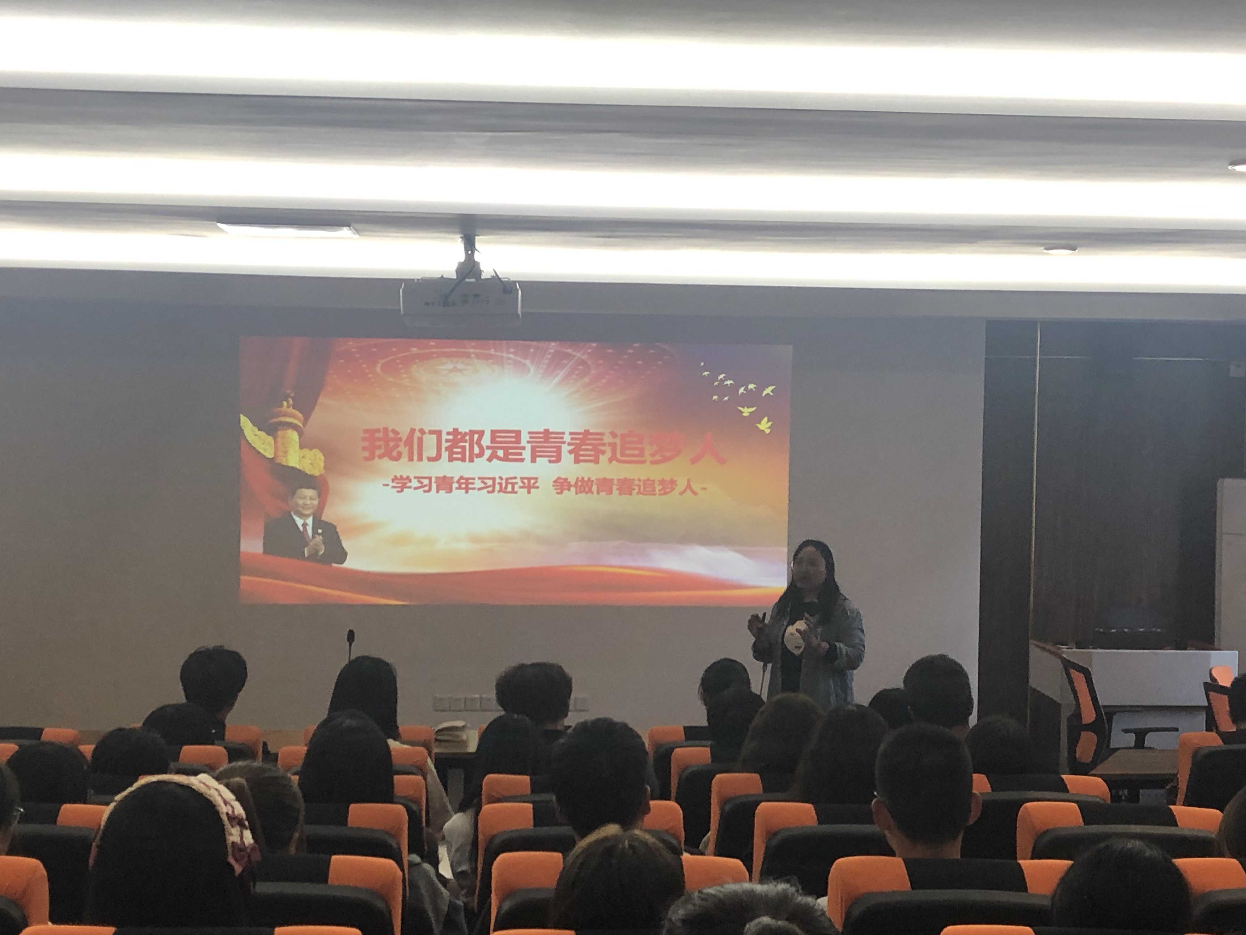 学生党支部书记刘丽以“我们都是青春追梦人”为题,为大家讲述了习近平总书记在梁家河的七年知青岁月,从总书记在梁家河的所思、所做、所为,分享了总书记的初心坚守和使命担当,号召广大学生要敢于有梦、勤于追梦、勇于圆梦,在人生前进的道路上越走越远。会后,与会学生还围绕“初心是什么、使命干什么、奋斗比什么”开展了大讨论。
