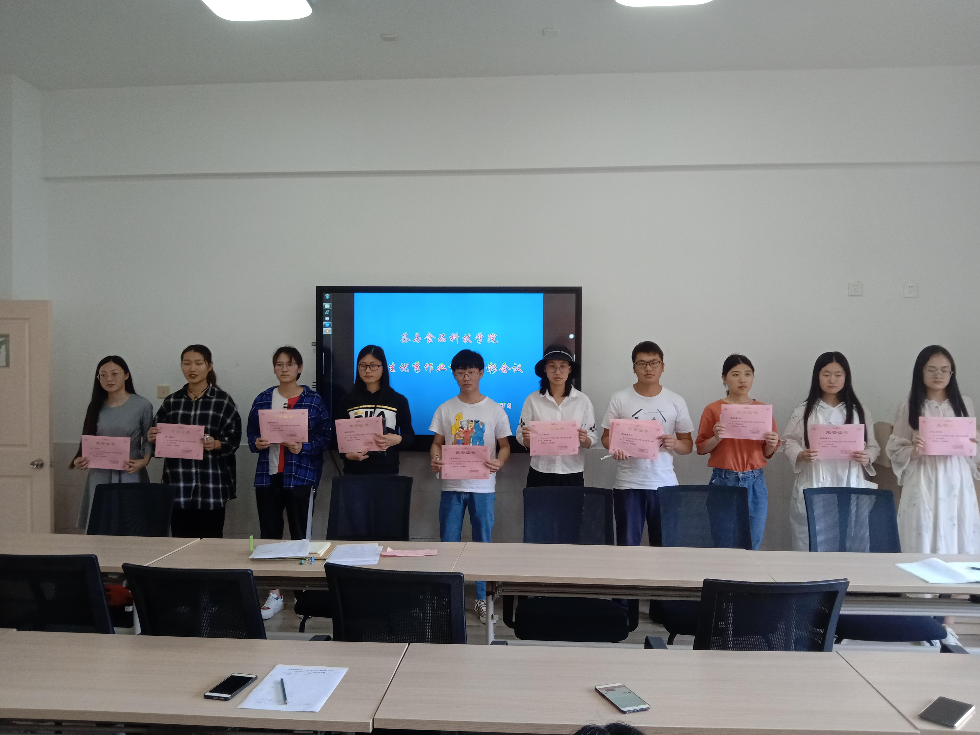 5月23日下午4:00,茶与食品科技学院在综合楼西301会议室召开了学生优秀作业评比总结表彰会议。