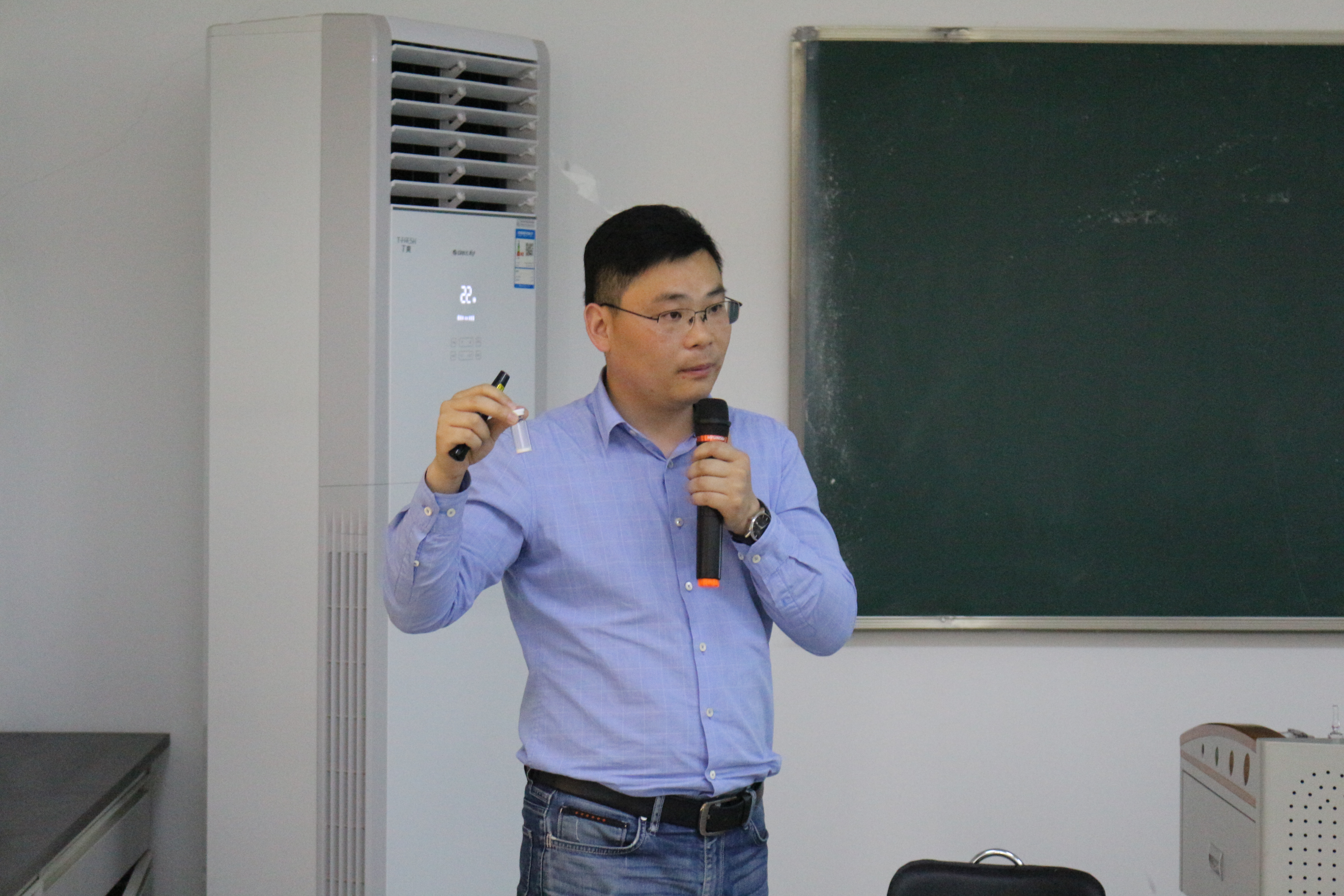 5月16日下午,我院在实验室SA303举办名企工匠进校园系列活动之工匠技能展示活动,江苏奥赛康药业生产部部长堵呈达工程师受邀参加工匠技能展示,药品生产技术专业的近50名同学和相关老师参加了本次活动。