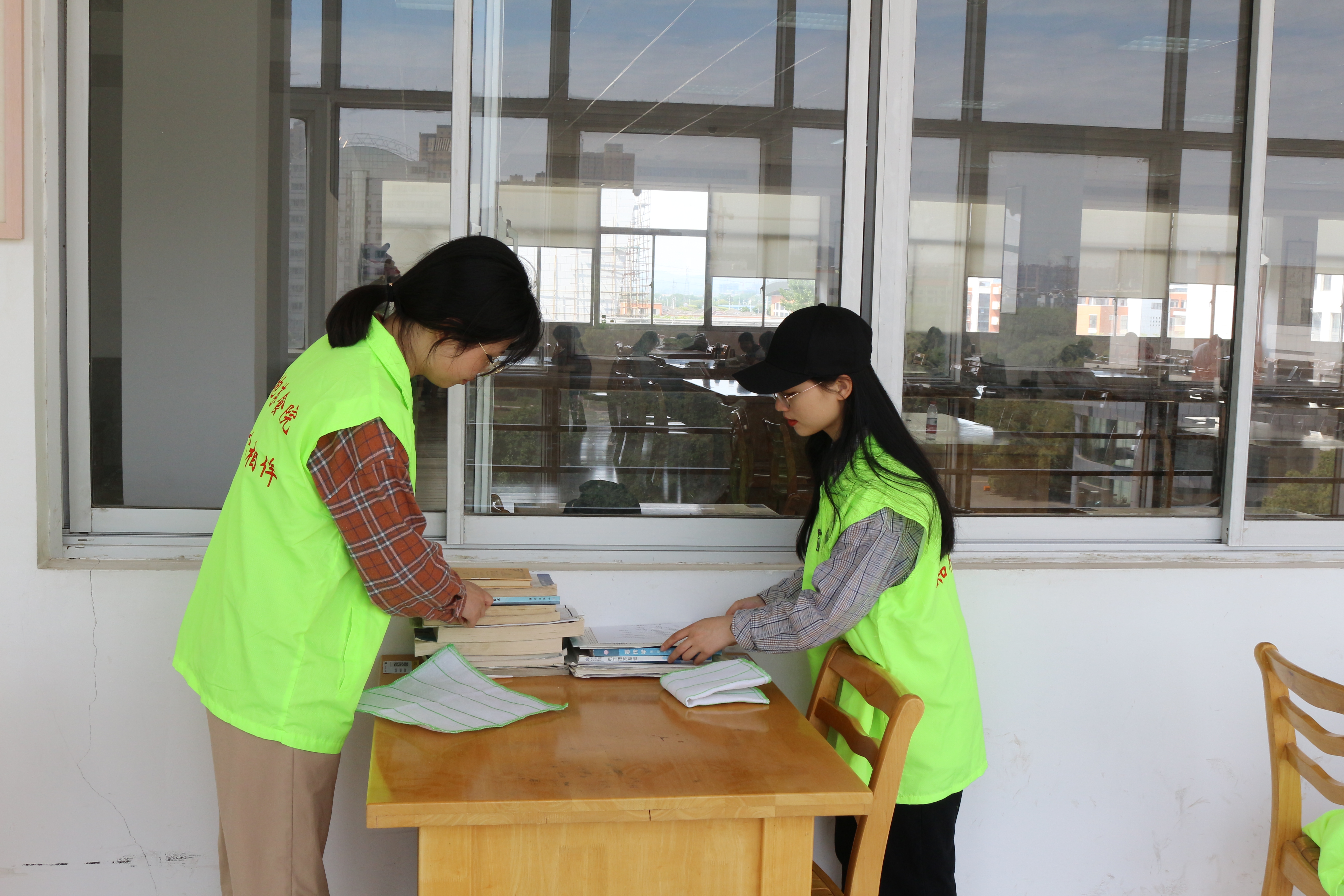 活动伊始,同学们在北校区图书馆开展整理书籍、清理书桌、打扫卫生等活动,努力创造一个更加雅静、整洁的环境。接着,同学们带着美好的祝福和灿烂的笑脸与国旗合影,用自己的行动表达对祖国的真挚情感。