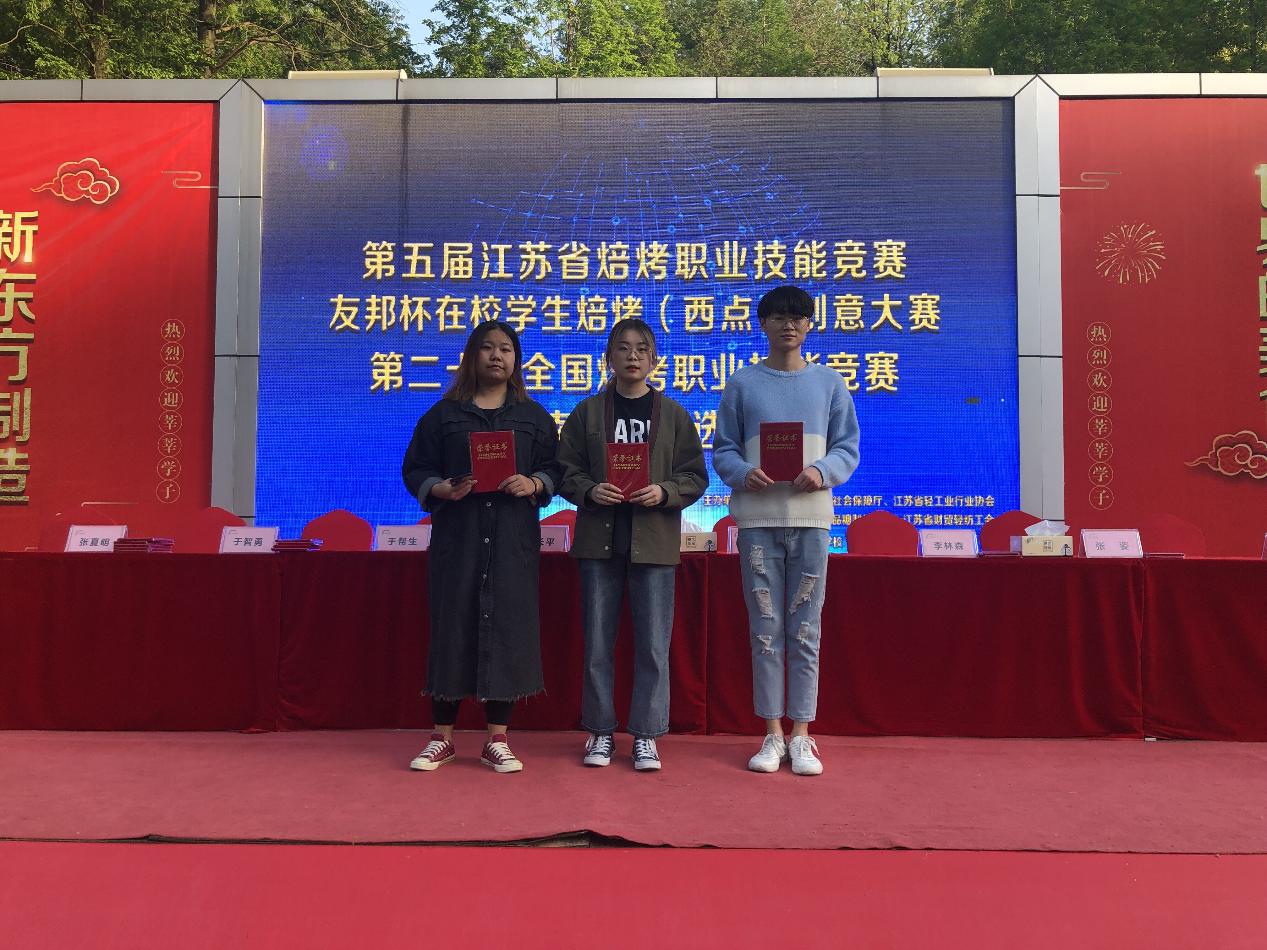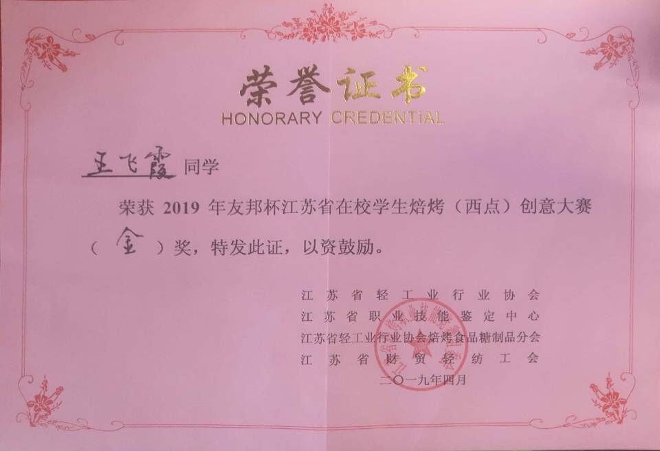 2019年4月17日上午,第五届江苏省焙烤职业技能大赛在校学生焙烤(西点)创意大赛在江苏南京举行。茶与食品科技学院王飞霞、王宪正和王雪钰三名同学参赛,凭借刻苦的训练、扎实的功底和良好的心理素质,荣获此次大赛的金奖一名、银奖两名。戴照琪、许俊齐和宣文芳三位老师荣获优秀指导老师称号。