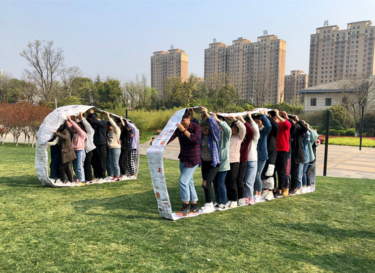 在刘丽老师的带领下,同学们通过“同心圆”互致问候暖场。在“同心鼓舞”和“同舟共济”环节,同学们集思广益、动手制作,在团体共同努力完成游戏的过程中,不仅促进了交流,而且培养了团队默契。