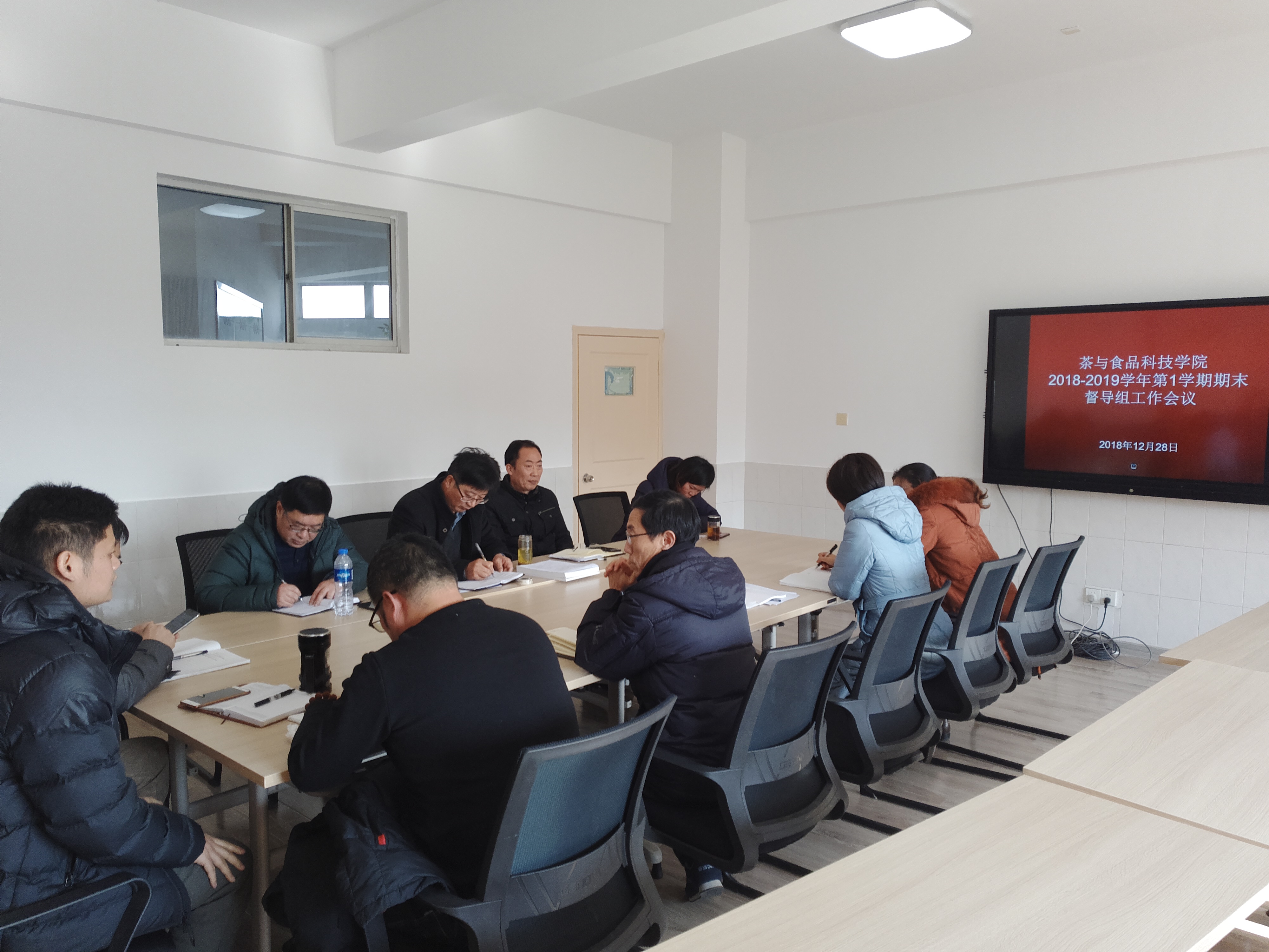 12月28日,我院督导组在综合楼西301会议室召开了督导组工作会议。会上,专职督导就本学期督导组主要工作进行了简要总结,请大家讨论怎样开展好这学期的评教评学工作。童斌副院长传达了督导处评教工作会议精神。曹正院长作了总结发言,强调了要进一步提升督导工作水平,进一步维护好茶食院教育教学秩序,提升教育教学水平;并且就如何做好评教工作提出了指导意见。
