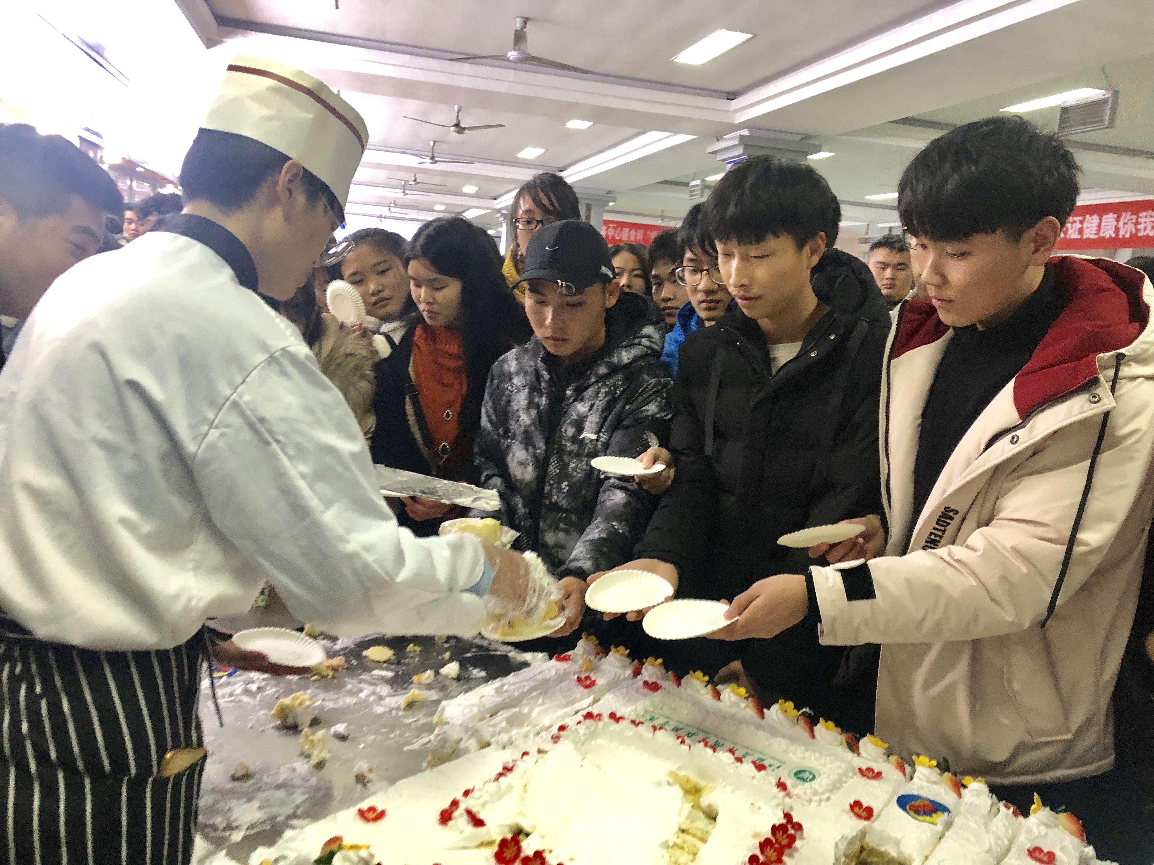 12月9日下午,我院联合后勤管理与服务中心在师生食堂一楼餐厅举行“共贺学院95华诞”生日蛋糕分享活动。