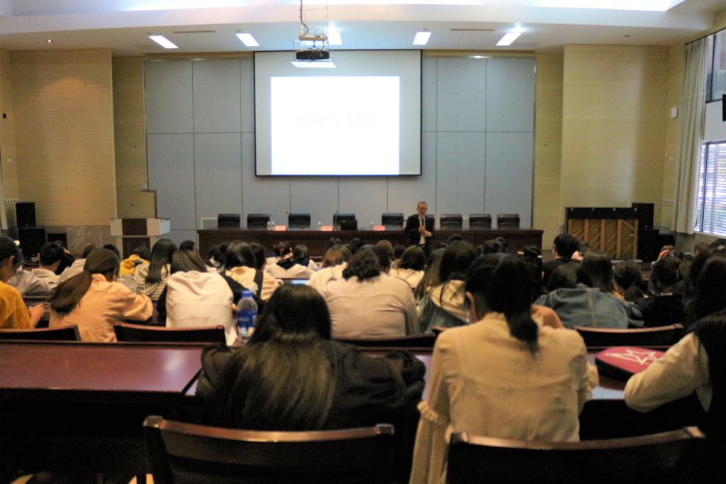 张晓程总经理结合自身经历与同学们分享职场中的经验,从第一份工作的重要性,对职业、职场积极心态的重要性,到职场选择的重要性,有什么样的选择,就有什么样的人生。鼓励同学尽早合理规划职业和人生目标,不断追求,挑战自我,实现自我。