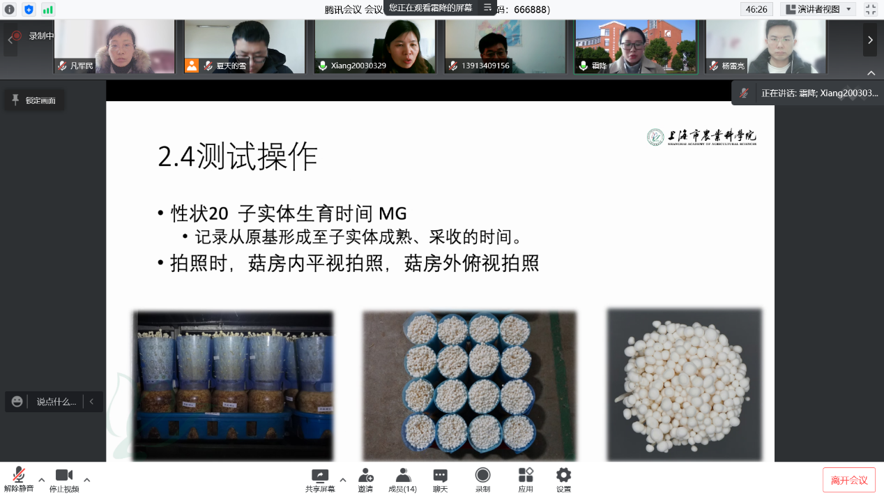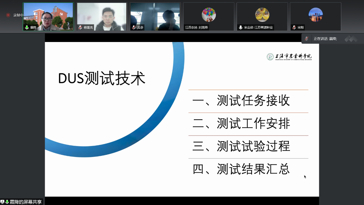 讲座以线上交流的形式进行,徐博士从测试任务接收、工作安排、实验过程和结果汇总四个方面对DUS测试技术过程进行了详细讲解。讲座结束后,徐博士还与项目组老师们进行了互动交流,详细解答了老师们提出的问题。