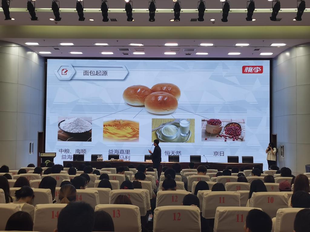 刘厂长首先介绍了烘焙行业的发展历程,其次分享了自身从非食品专业的一个实习生到上市公司的江苏厂长的蜕变过程。刘厂长的职业发展经历使同学们更加清楚地认识到知识是走向梦想的跳板,反复和持续的实践也同样重要。刘厂长诙谐幽默,频频与现场的同学互动,气氛热烈。