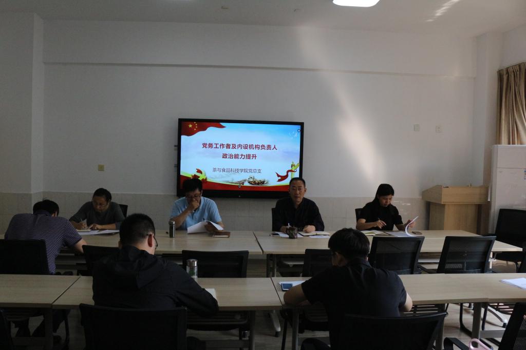 9月30日下午,茶食院党总支在综合楼317举办党务工作者及内设机构负责人政治能力提升培训会,党总支委员、党支部支委以及内设机构负责人参加了会议。