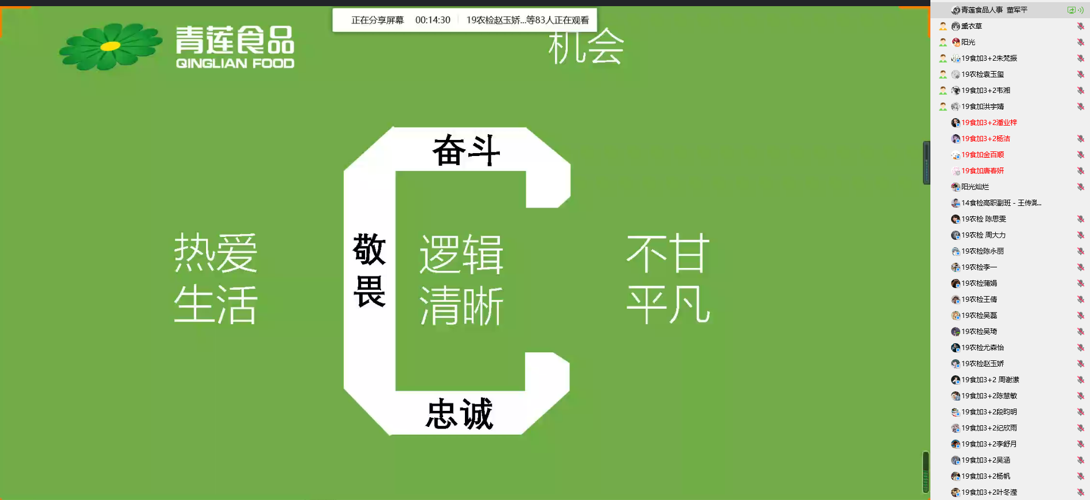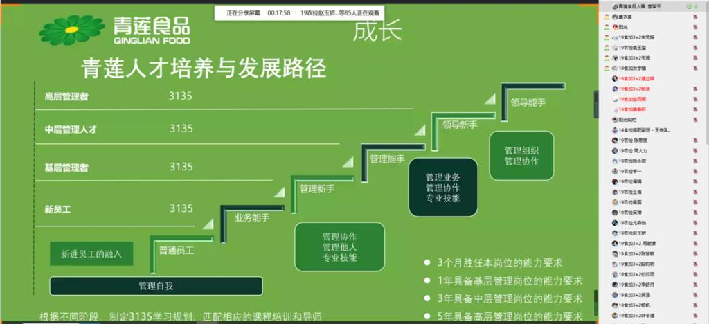 首先校友王传潞分享了自己的成长路上的苦与乐,他说:“前方的路充满棘荆也会充满鲜花,只要我们立足现实,坚定勇敢,乐学善学,敢于突破,梦想之花终将绚烂绽放”。接着董军平经理介绍了肉类食品加工行业发展状况、公司员工人才培养与发展路径,疫情期间用互联网思维对产业发展进行改造、升级和拓展。