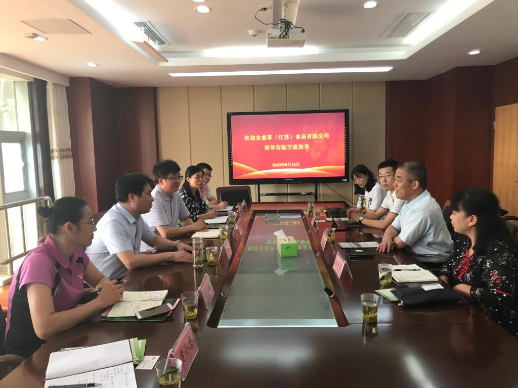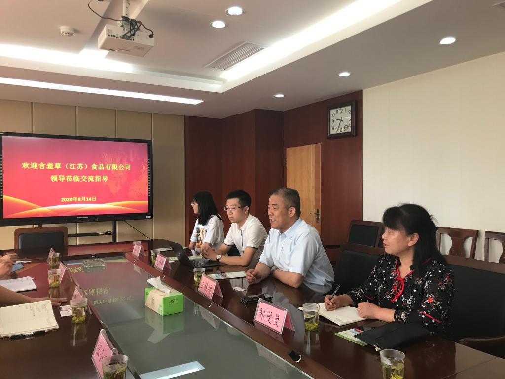 8月14日,含羞草(江苏)食品有限公司董事长王健坤一行5人来我校交流校企合作事宜,校长简祖平,茶与食品科技学院院长曹正及相关老师参与交流座谈。