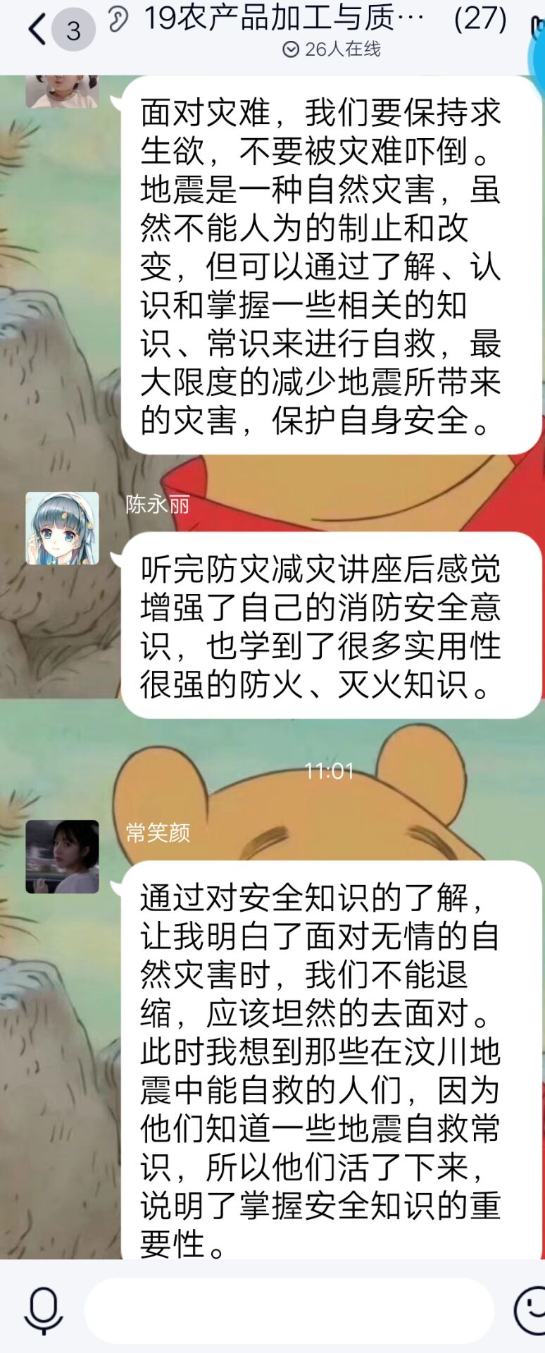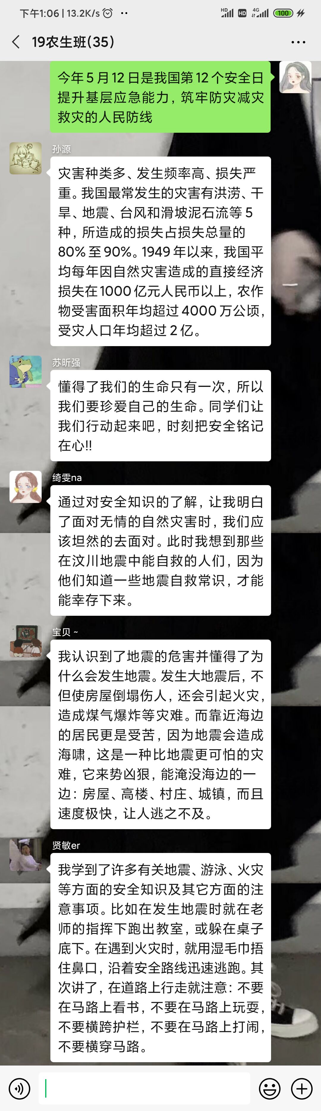 今年5月12日是全国第12个防灾减灾日,主题是“提升基层应急能力,筑牢防灾减灾救灾的人民防线”。为增强学生的防灾减灾意识,普及应急避险知识和自救互救方法,5月11-12日,茶与食品科技学院团委组织全体学生开展“防灾减灾 就在身边”云上主题宣教活动。