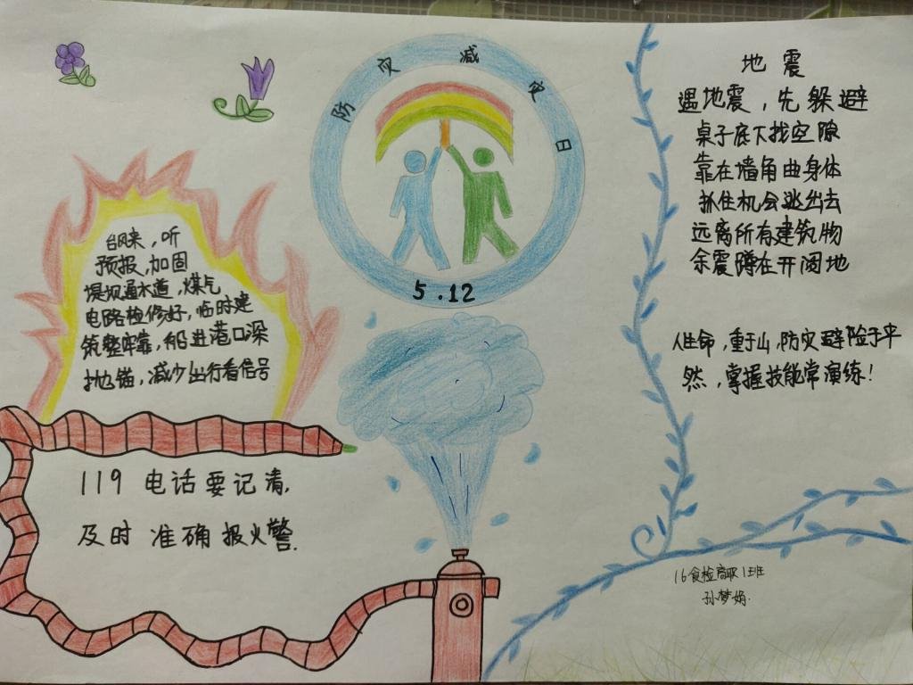 活动中,同学们以手抄报、海报、绘画、漫画、VLOG的形式展示创意作品,宣传普及知识。同时,观看宣教视频,学习应急技能,在班级群接力分享心得体会。当灾难真正降临身边的时候,大家能够知道“我该怎么做”,而不是孤立无援,束手无策。