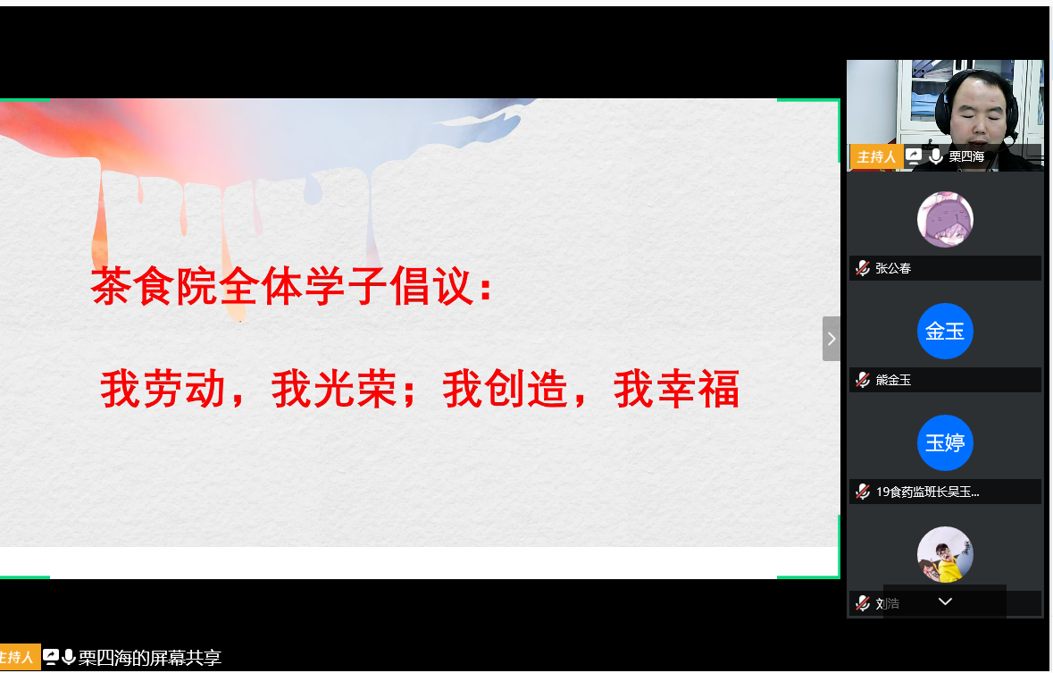 在疫情防控的特殊时期,我院学子在线学习、居家学习已持续了一段时间。在当下学生们居家学习的特殊场域和时期,正是开展好劳动教育的重要契机。抗“疫”时期,学生长时间在家,劳动机会比平时更多,更需要通过自己动手来满足生活的基本需要。4月25日我院开展“向劳动者致敬学习”的线上培训,讲解了五一劳动节的由来、不同岗位劳动模范案例、奋斗的青春最美丽、弘扬劳模精神争做时代楷模、向劳模学习等内容,加深了学子对劳动的意义、精神的理解,随后我院团委向学子发出了劳动倡议书;倡议书发出后不久收到了多个学生在家烧饭、打扫卫生、帮助做农活的照片和视频,他们结合自身的实际情况进行了不同内容的劳动实践;4月30日通过腾讯会议进行线上研讨,交流分享劳动心得和体会,进一步理解并践行劳动的伟大与光荣。