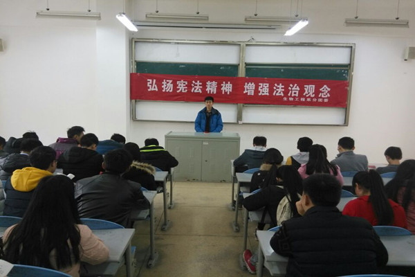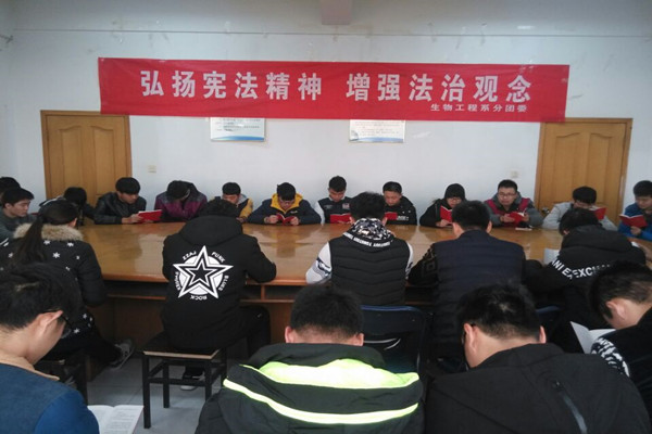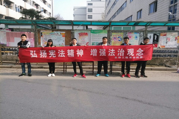 系分团委深入开展宪法学习活动,组织学生登录教育部全国青少年普法网“网上学宪法”学习专栏,利用网络资源,深入学习宪法,并组织学生积极参加学院在食堂前广场开展的宪法知识竞答;在食堂门口开展横幅签名活动,并悬挂在宣传栏上,活动现场免费发放宪法手册,普及宪法知识,营造浓厚的教育氛围;组织班级团支书紧密围绕学宪法讲宪法活动主题召开主题班会,并在综合楼304、励志广场组织班级主要学生干部、新生开展宪法晨读;立足当代大学生思想、学习和生活实际,组织10名学生在理科楼309开展以讲宪法故事、讲对宪法的认识与体会、谈宪法精神等为主题的演讲比赛,调动学生参与讲宪法活动的积极性,最终,范秋丽、朱明江分获第一名、第二名。