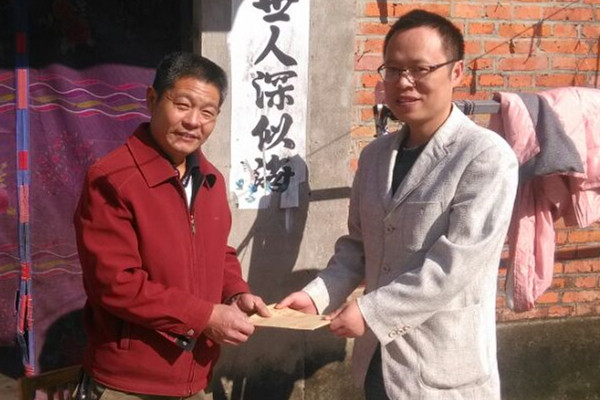周圆节同学的家庭今年突发变故,为给其家庭提供紧急资金救援,我系分工会于11月1日赴泗洪县将5000元善款交到周圆节家人手中,周圆节班主任以及系辅导员参加了此次现场捐赠。虽然学院师生的捐款有限,但是周圆节及家人感受到了学院的关怀。