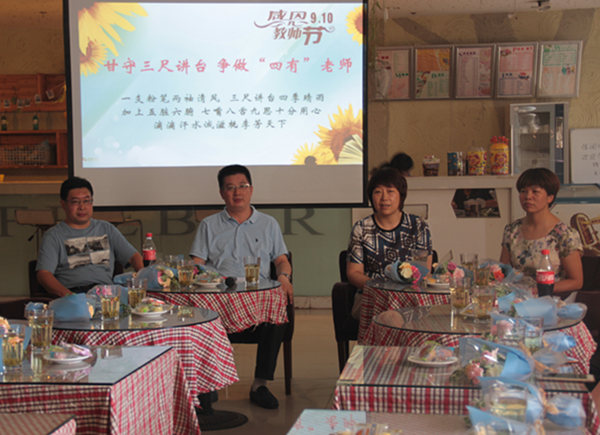 在第32个教师节来临之际,9月9日,我系在学习休闲吧举办“甘守三尺讲台争做‘四有’老师”教师座谈会,全系教师欢聚一堂,学先进、话发展,学院副院长贾君应邀与会,曹正主任主持会议。