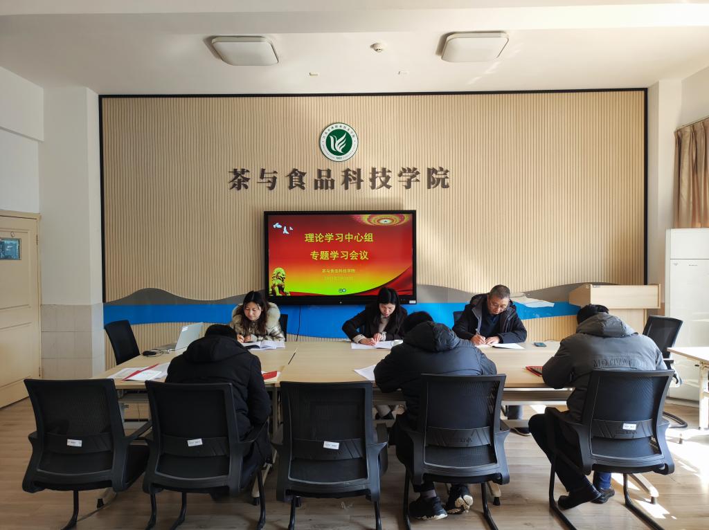 2月15日,茶与食品科技学院理论学习中心组专题学习习近平总书记在党的二十届一中全会上的重要讲话精神,党总支书记谢春芹主持,中心组全体成员参会。