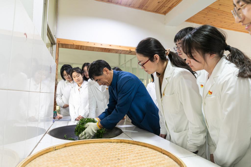 青年教师作为我校教师队伍的一个重要组成部分,是学校发展的希望。为促进青年教师成长,造就一支“勇立潮头、敬业爱生、拼搏奉献、开拓创新”的茶学青年教师队伍,4月22日,茶与食品科技学院党总支书记谢春芹一行8人赴苏州东山开展“思政引领”、“由老带新”茶专业青年教师向学向志专题活动,现场授予国家级非物质文化遗产“苏州洞庭碧螺春制作技艺”代表性传承人施跃文大师校外特聘教师证书。