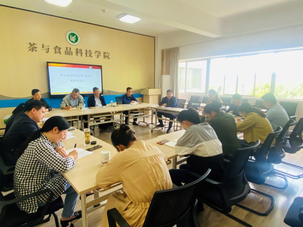 为进一步促进茶艺与茶文化、茶叶生产与加工技术专业教师发展,茶与食品系于5月12日在综合楼317会议室召开茶专业教师研讨会。茶与食品科技学院曹正院长,王润贤教授、曹淼副院长、黄小忠副院长及茶专业的全体教师出席了会议,本次会议就师资队伍建设及如何提升课程教学质量进行了专项讨论。