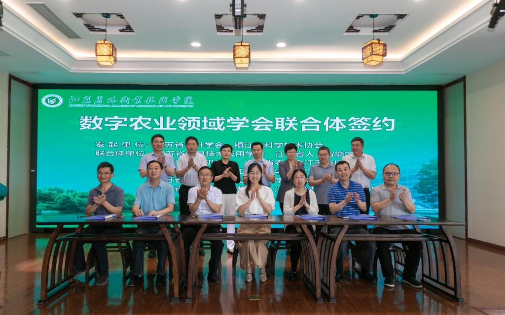 活动现场举行了数字农业领域学会联合体签约,此联合体由江苏省茶叶学会、镇江市科学技术协会联合发起,江苏省信息技术应用学会、江苏省人工智能学会、江苏省园艺学会、江苏省作物学会、江苏省林学会、江苏省农学会、江苏省土壤学会、江苏省遗传学会、江苏省数字经济学会、江苏省计算机学会、江苏省农村专业技术协会、江苏省绿色农业发展研究会等13个省级学会共同参与。