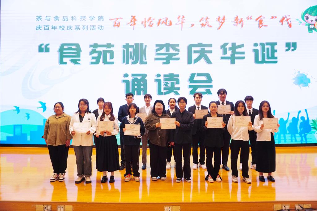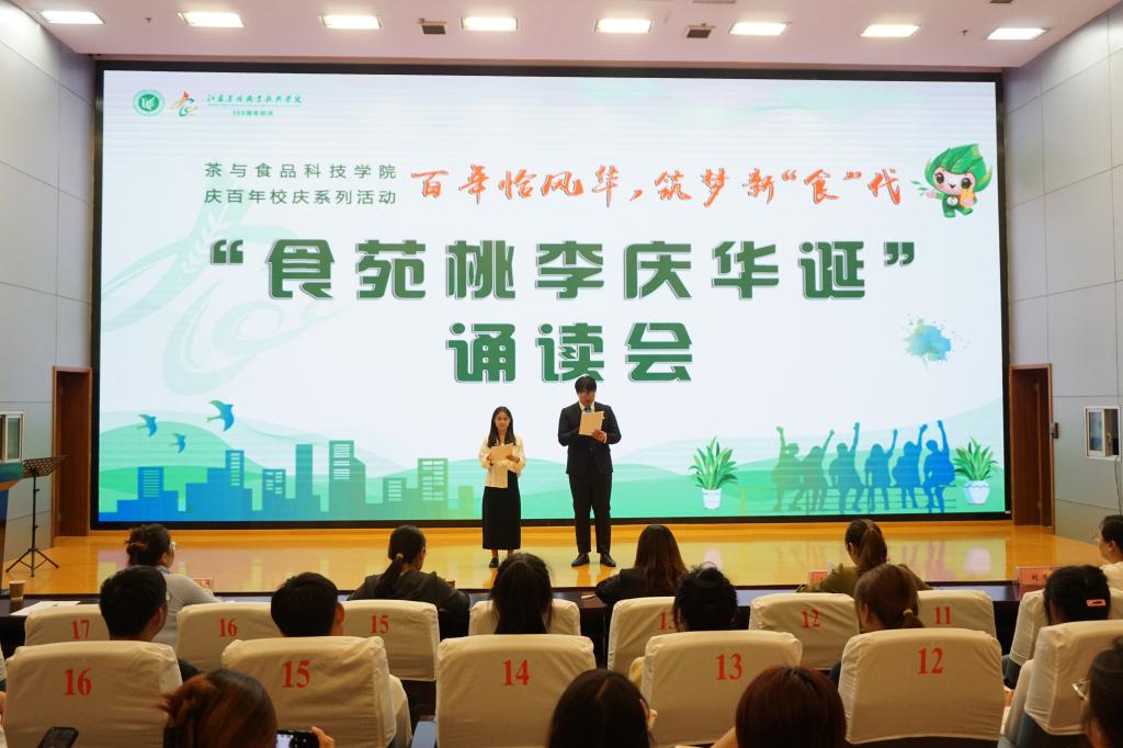 为营造喜迎校庆的热烈气氛,展现大学生风采,10月10日晚,茶与食品科技学院在图书馆报告厅举行百年恰风华筑梦新“食”代校庆系列活动之“食苑桃李庆华诞”诵读会活动。