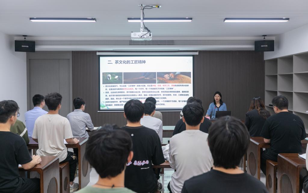 活动中,茶与食品科技学院党总支书记谢春芹以《弘扬工匠精神,传承制茶技艺》为主题讲授专题党课,希望同学们以“茶”为媒,在种茶、采茶、制茶、沏茶、赏茶、饮茶、茶艺学习中发扬茶德、传播茶道,感受和体验茶人专注、创新和精益求精的工匠精神。活动还聘请江苏省乡土人才大师工作室负责人许群峰担任校外指导教师,并发放聘书,开展“工匠大师课”,邀请许群峰以《宜兴红茶历史发展和生产要点》为题为同学们讲解了宜兴茶产业发展历史和茶园生态环境和肥水管理关键技术。