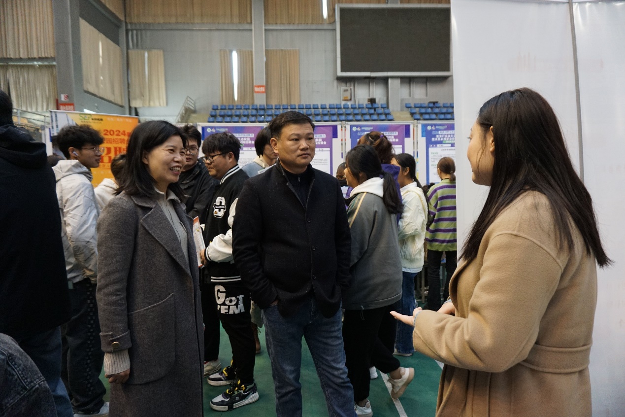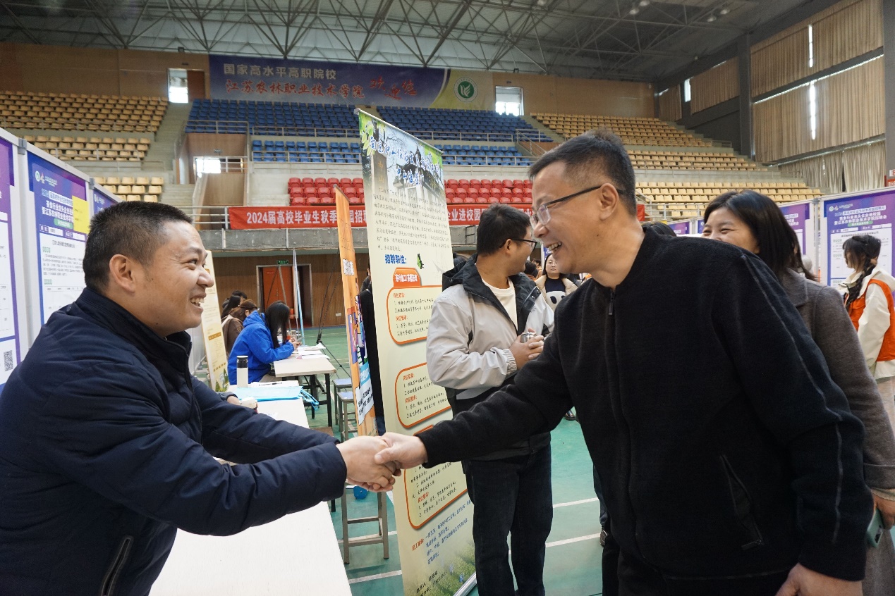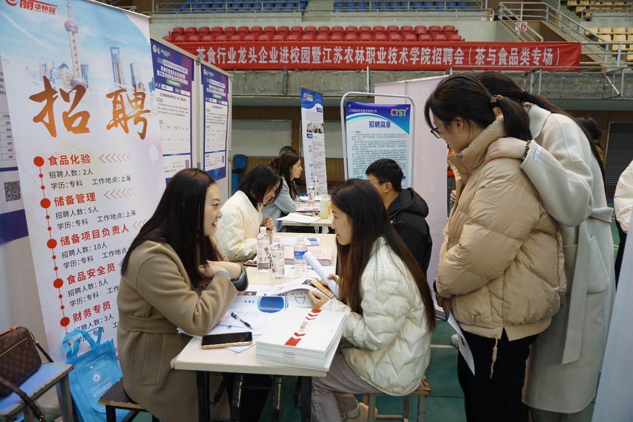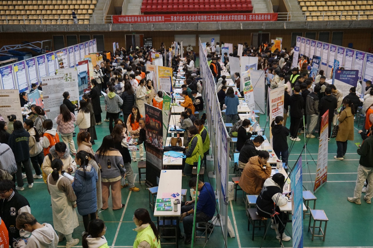 11月19日,由学院主办、茶与食品科技学院承办、江苏省茶叶学会和江苏省轻工业行业协会焙烤食品糖制品分会协办的“2024届高校毕业生秋季校园招聘月之茶食行业龙头企业进校园暨江苏农林职业技术学院招聘会”在体育馆二楼举行。学院党委委员、副院长毕德全、学生工作处、茶与食品科技学院等相关部门负责同志来到招聘会现场,与招聘单位的工作人员交流,了解用人需求和就业市场,积极推荐我院毕业生。
