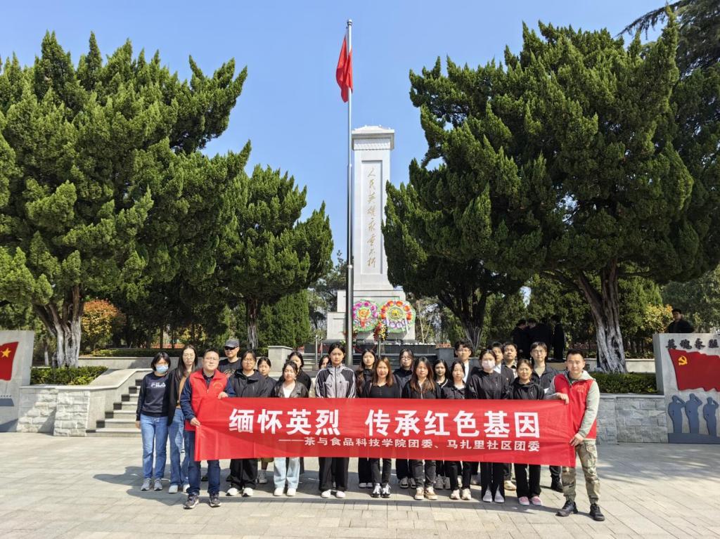 青山埋忠骨,山河念英魂。为深切缅怀革命先烈,弘扬英烈精神,传承红色血脉,2024年4月1日,茶与食品科技学院团委、学生党支部携手句容市马扎里社区,组织党员、团员代表前往句容市赵王山烈士陵园,开展“缅怀英烈,传承红色基因”清明祭英烈活动主题活动。