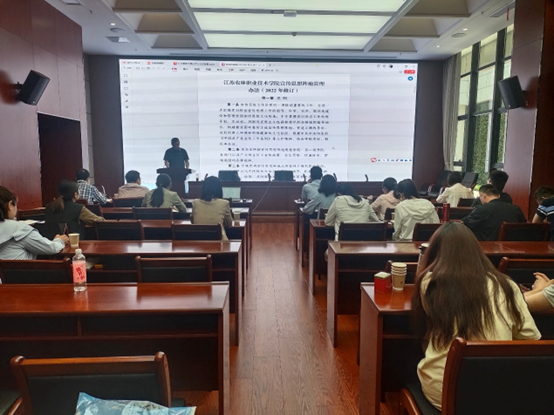 会上,曹书记首先带领全体教师学习了关于印发《江苏农林职业技术学院宣传思想阵地管理办法(2022年修订)》的通知(苏农林院委[2022]61号文)等文件精神和习近平总书记关于意识形态重要论述,强调了意识形态工作的重要性和紧迫性。他结合学院实际,对学院教育教学管理、学生群体教育管理以及思想政治工作等进行了进一步部署。他指出,学校是党意识形态工作的前沿阵地,要主动增强意识形态工作的自觉性和主动性,切实把意识形态工作放在心上、扛在肩上、抓住手上。