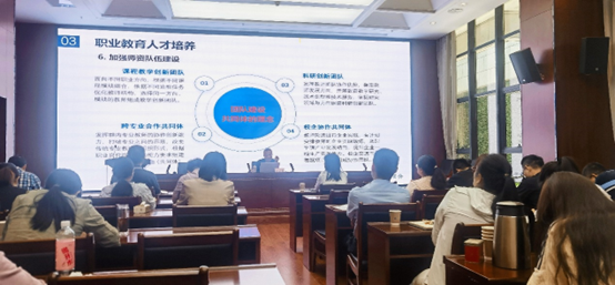 逯家富教授首先对“新质生产力”内涵进行了解读,并对职业教育功能特色和人才培养质量提升的具体路径进行了详细剖析。报告中,逯家富教授对当前高职院校创新人才培养模式、师资队伍建设等提出了很多富有创新性、开拓性的想法和建议,这对我院夯实人才培养、强化师资队伍建设具有指导意义。