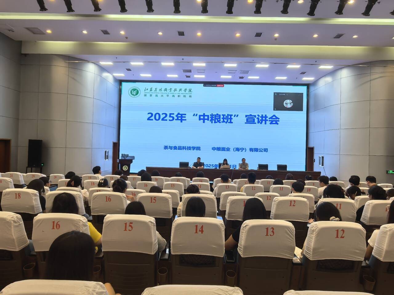 为深化校企合作育人模式,帮助学生精准对接行业需求、明晰职业发展方向,9月11日,茶与食品科技学院在图书馆报告厅举办了“名企工匠进校园”活动之“中粮有你”专题讲座暨23级“中粮”订单班组班宣讲。活动邀请了中粮面业(海宁)有限公司经理吴晓丽、仲鑫,优秀毕业生代表张顺彬主讲,23级农产品加工与质量检测专业的同学参加了讲座。会议由茶与食品系主任陶程主持。