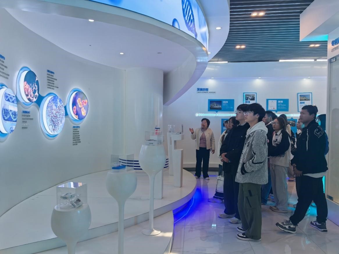 在企业人员的引导下,同学们先后参观了公司现代化的产品展厅、严谨有序的研发实验室以及环境优美的产业园区,并于会议室观看公司宣传片以及与企业代表进行交流座谈。通过对公司发展历程、前沿技术产品与先进科研设备的零距离接触,书本上的生物知识变得生动而具体。